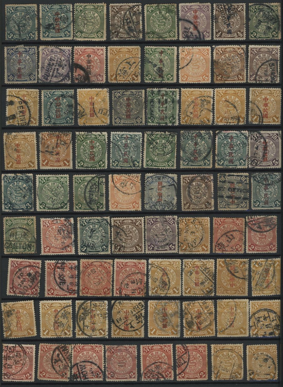 A nice assembly of coiling dragons mixed printings used, total 576. Some better cancellations.