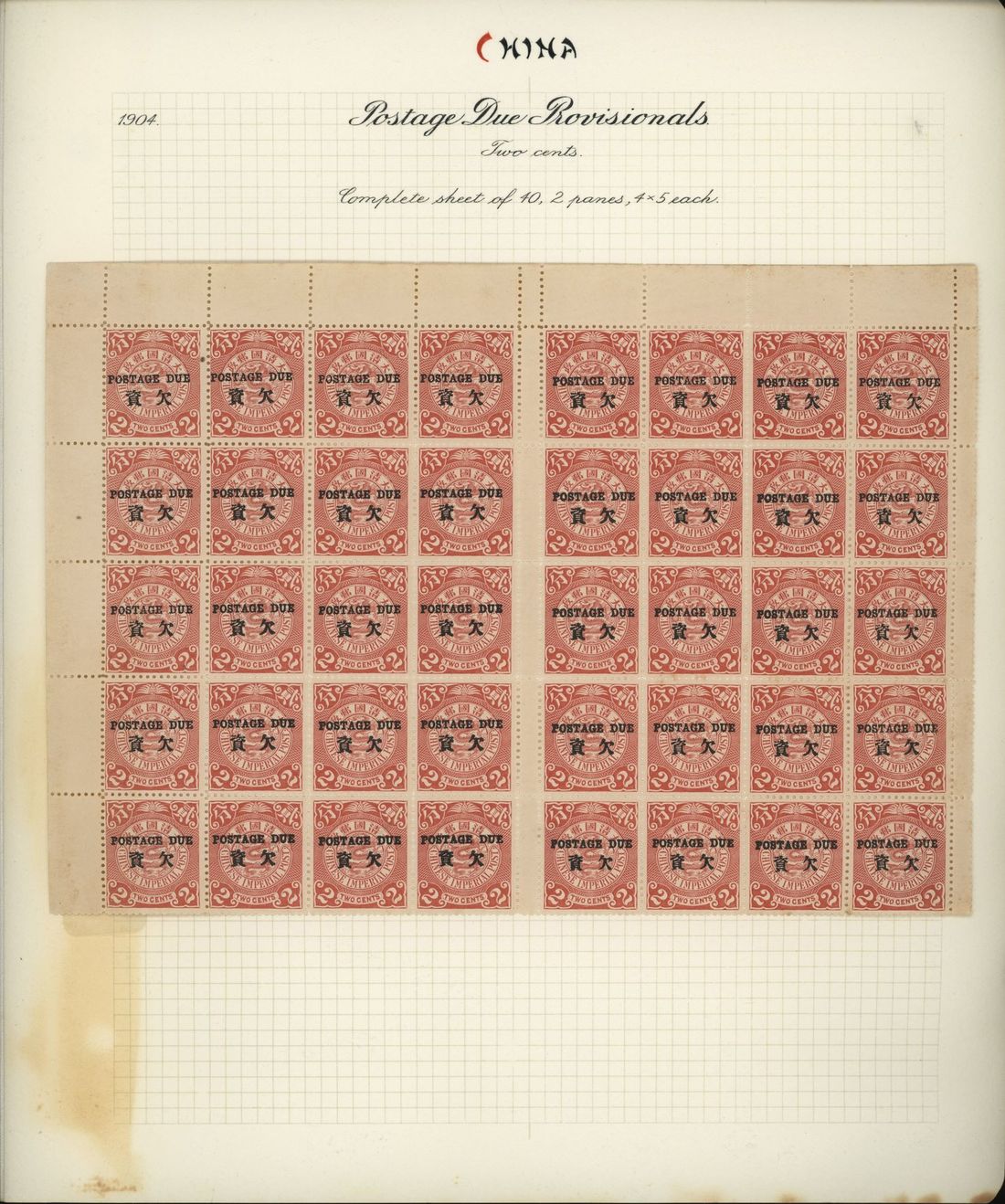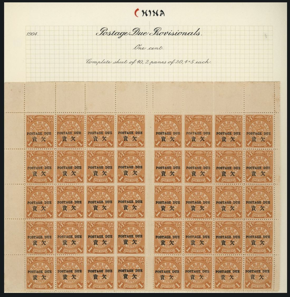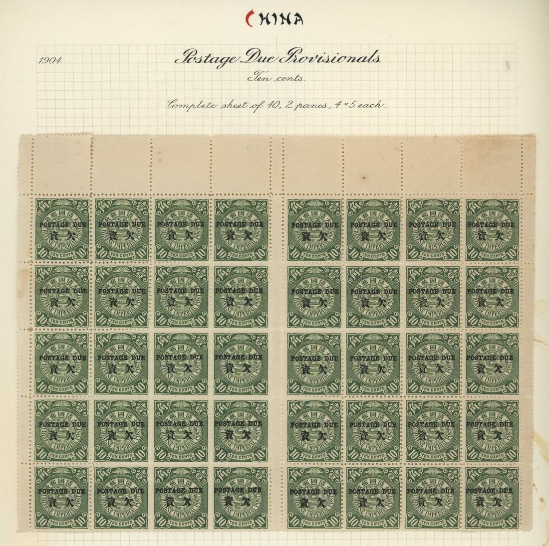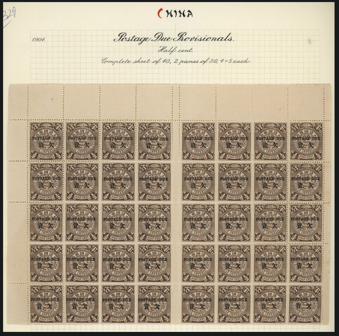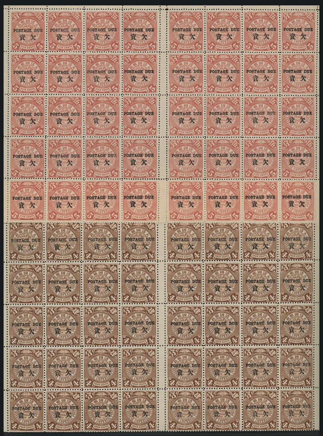 Postage Due ovpt on Coiling Dragon collection of panes, including 1/2c (x2), 1c, 2c, 5c, 10c all in panes of forty. Very mint and scarce.