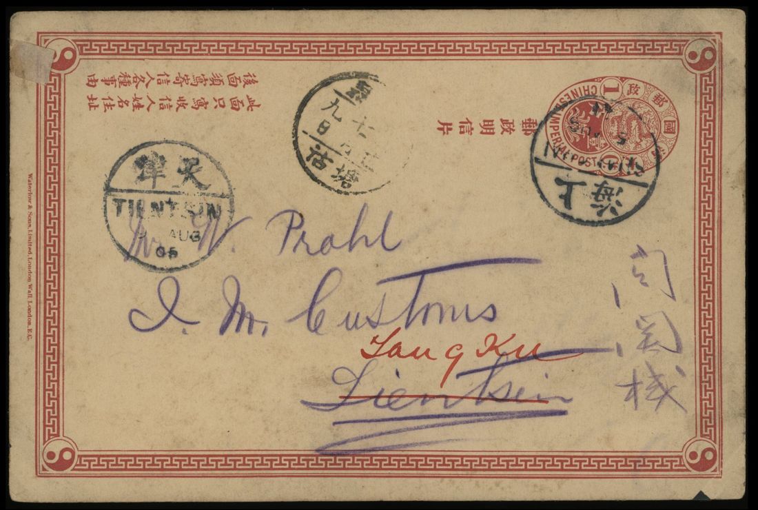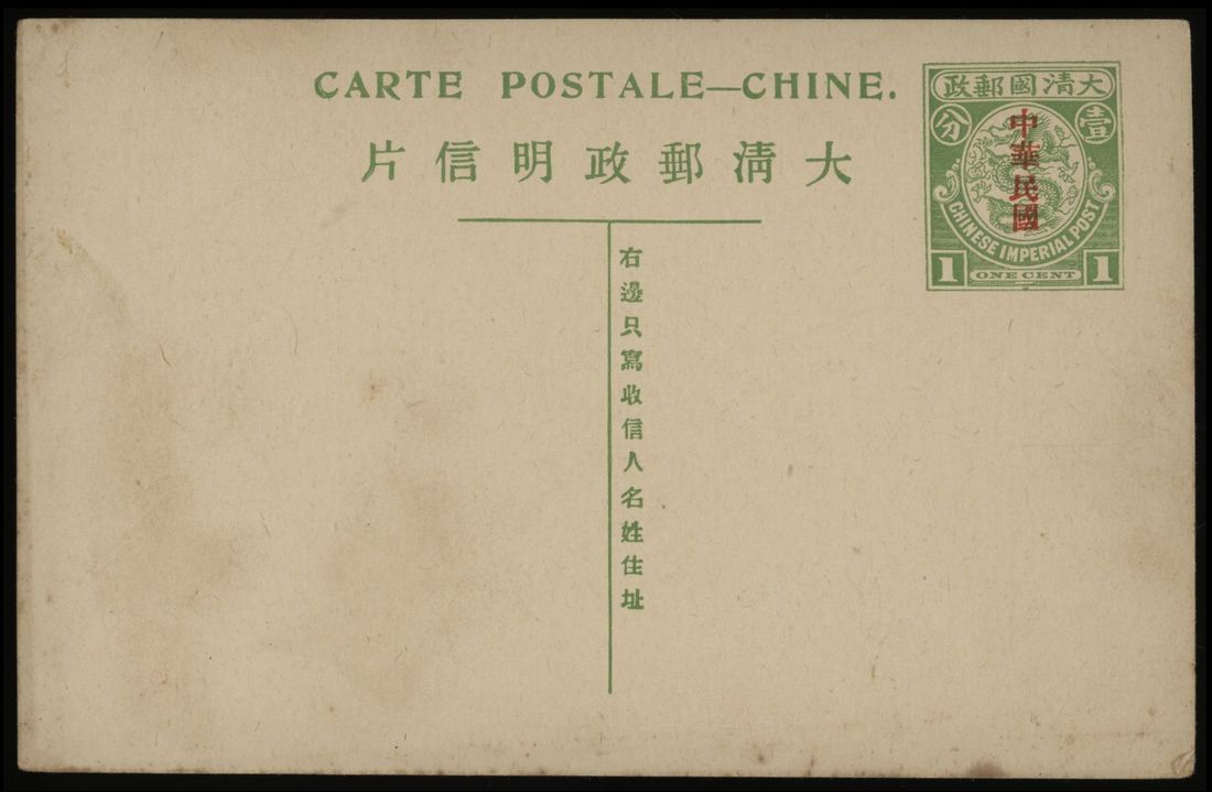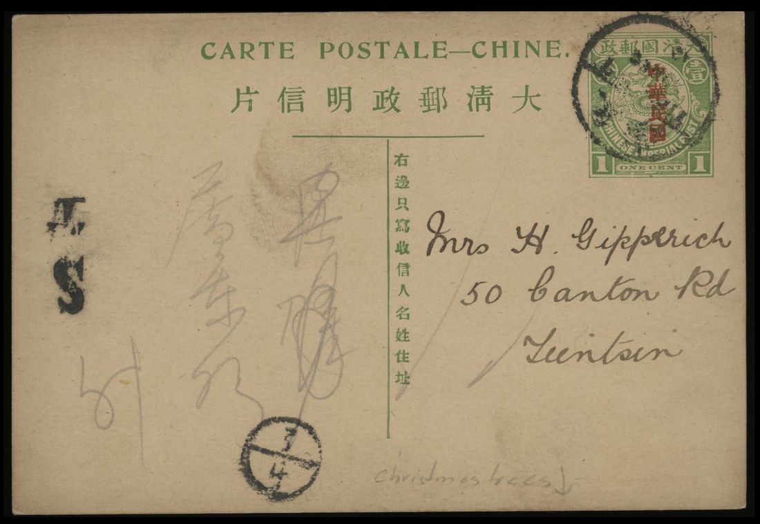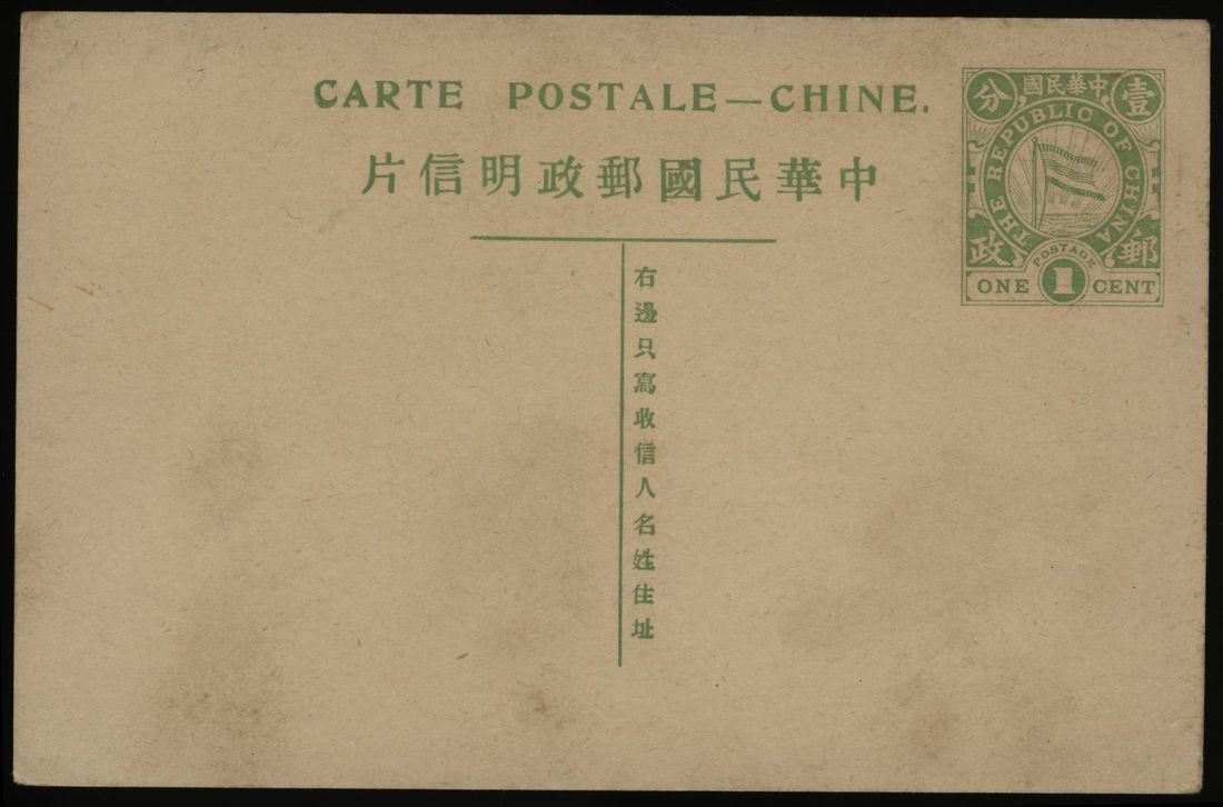 Selection of 7 postal stationery items, mostly Republic of China, includes a rare Tangkow cancellation on Flag design card.