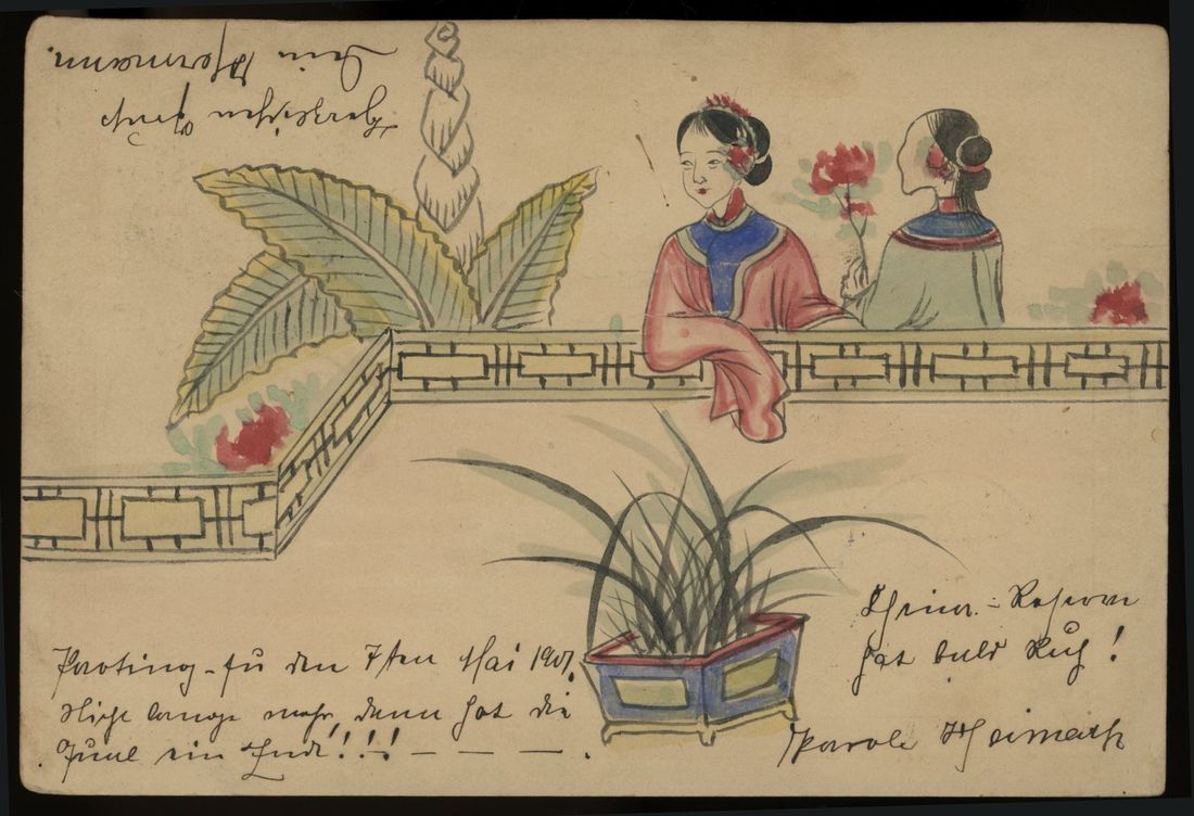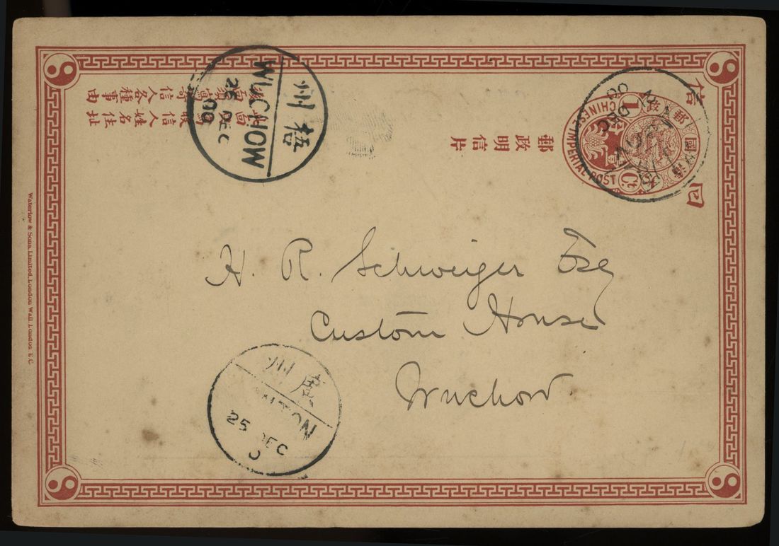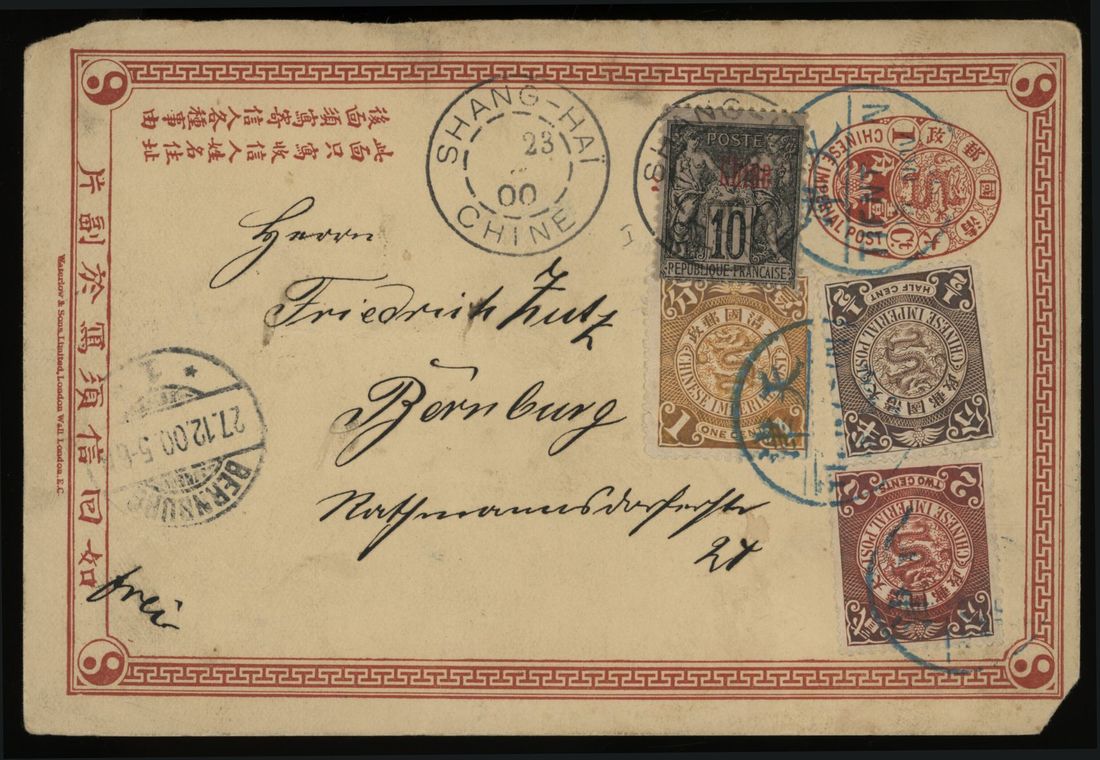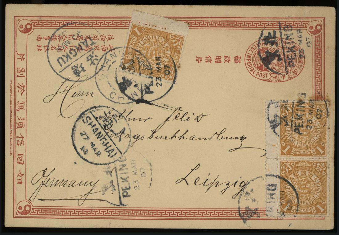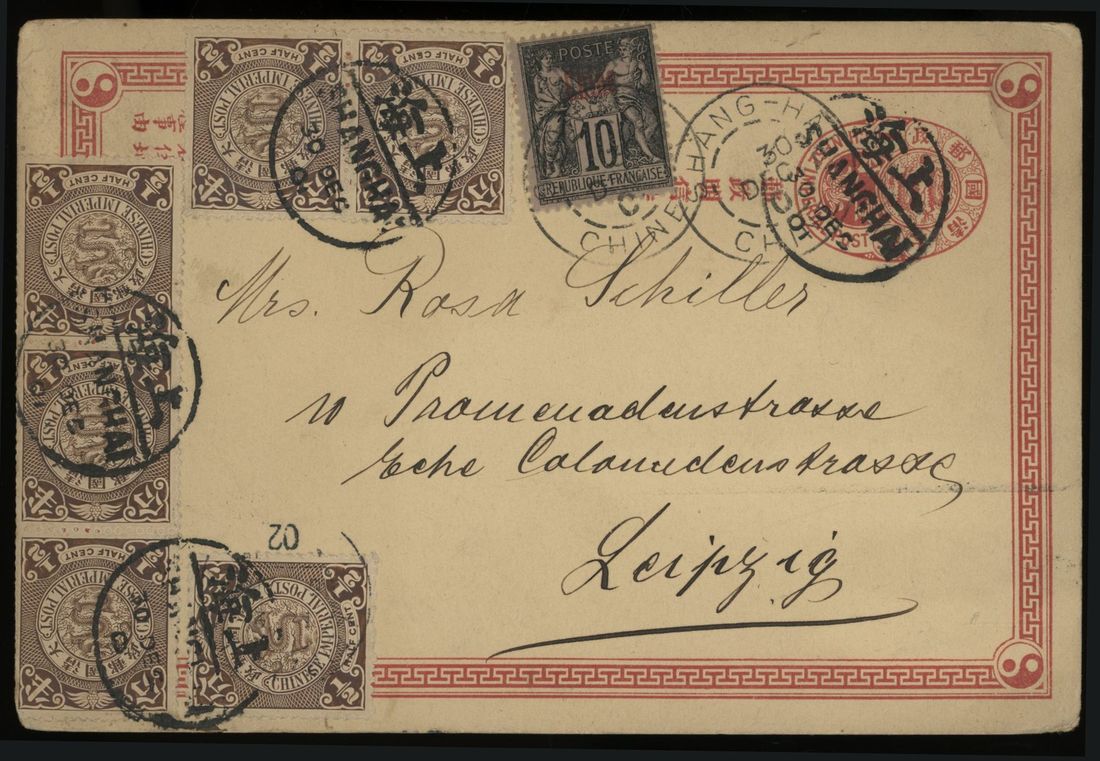 Selection of six Imperial China stationery cards. Some nice frankings and hand painted designs on back.