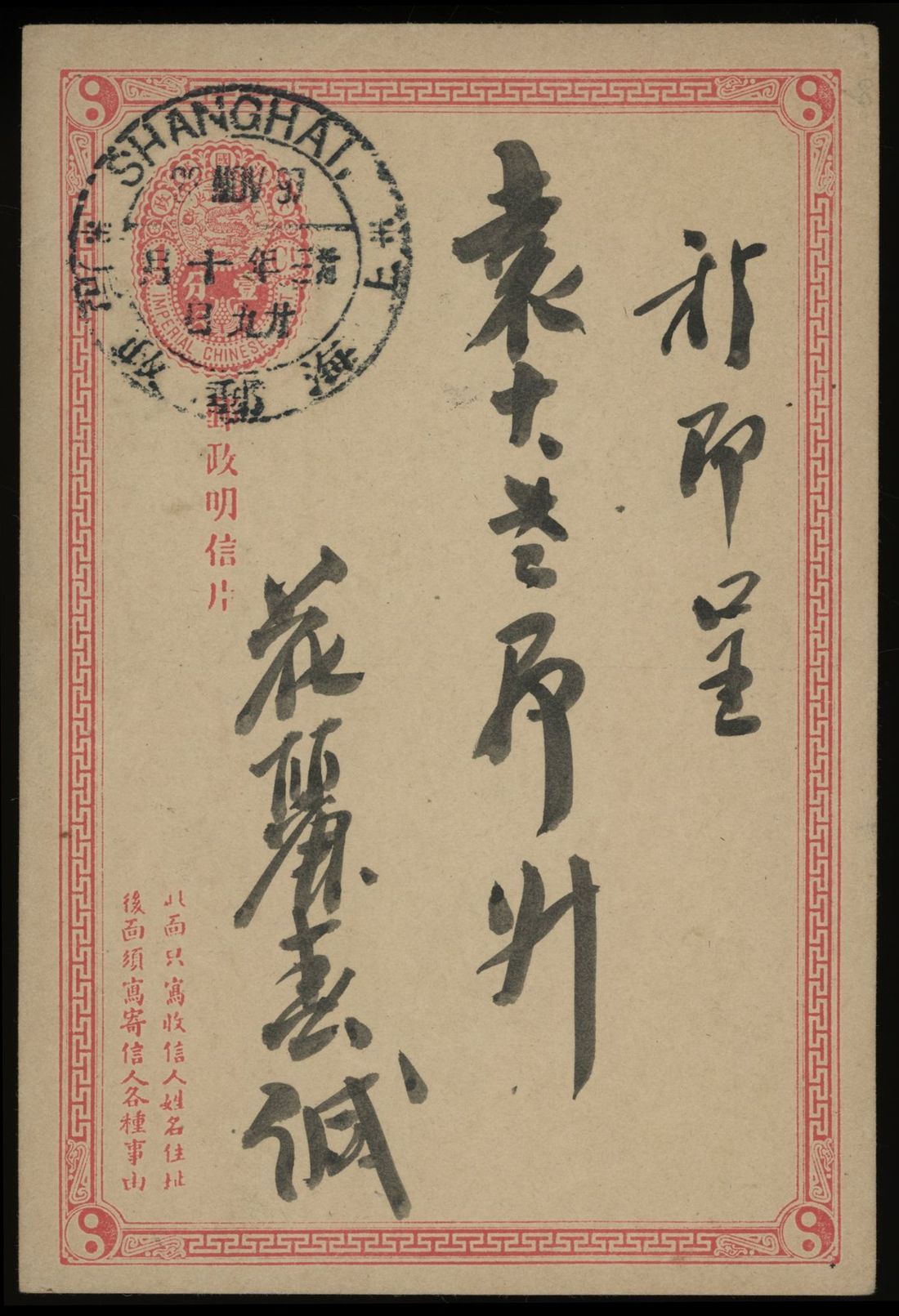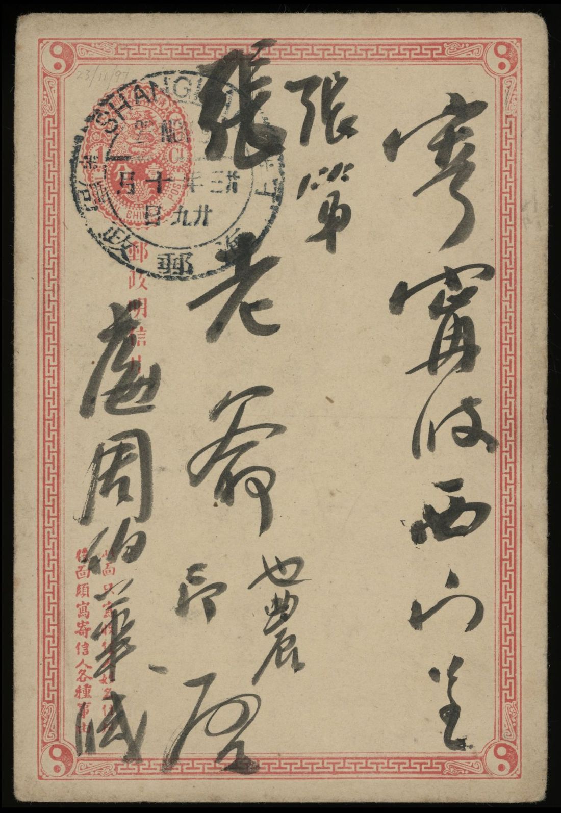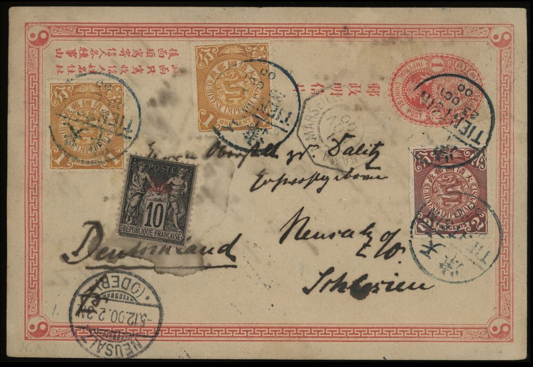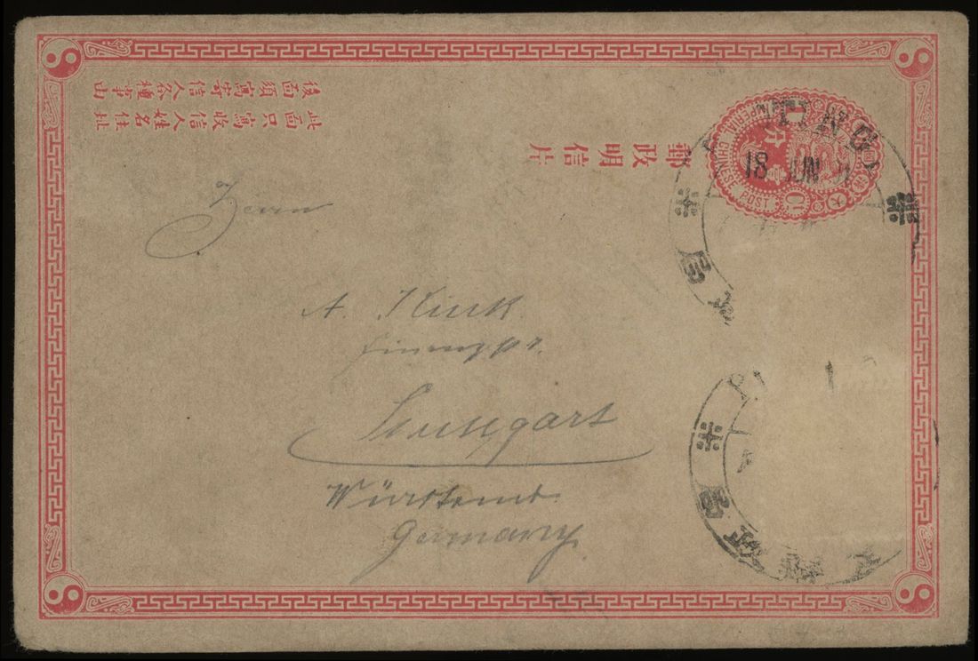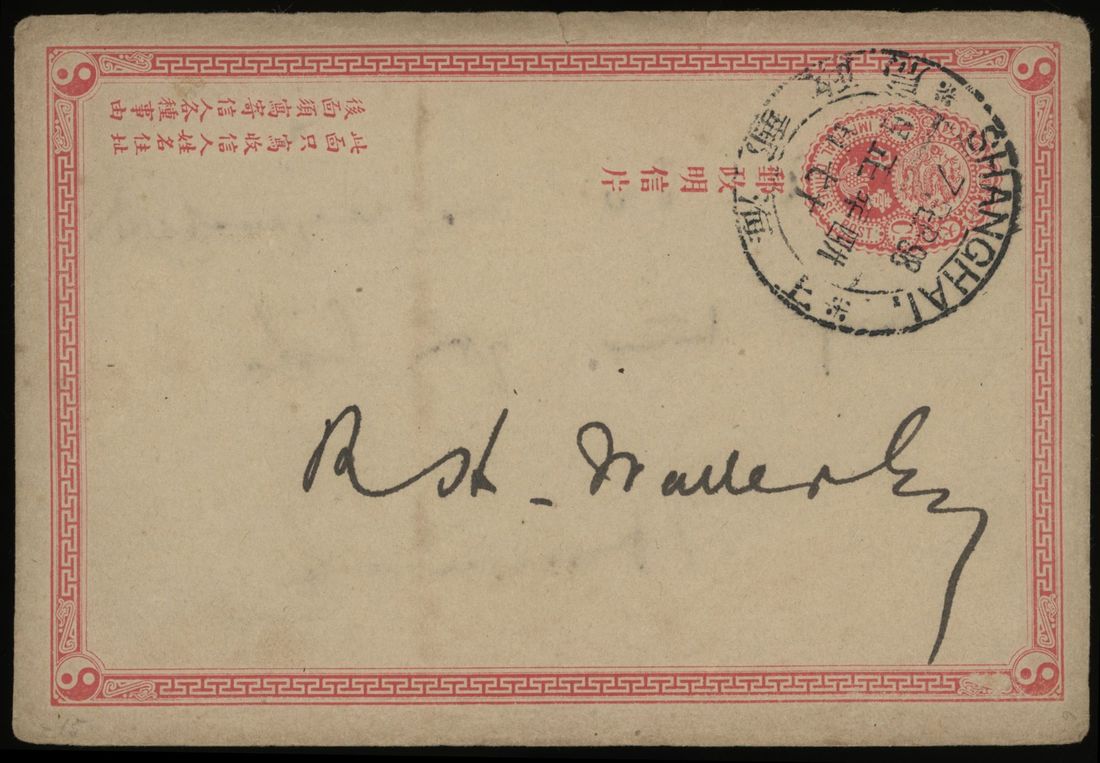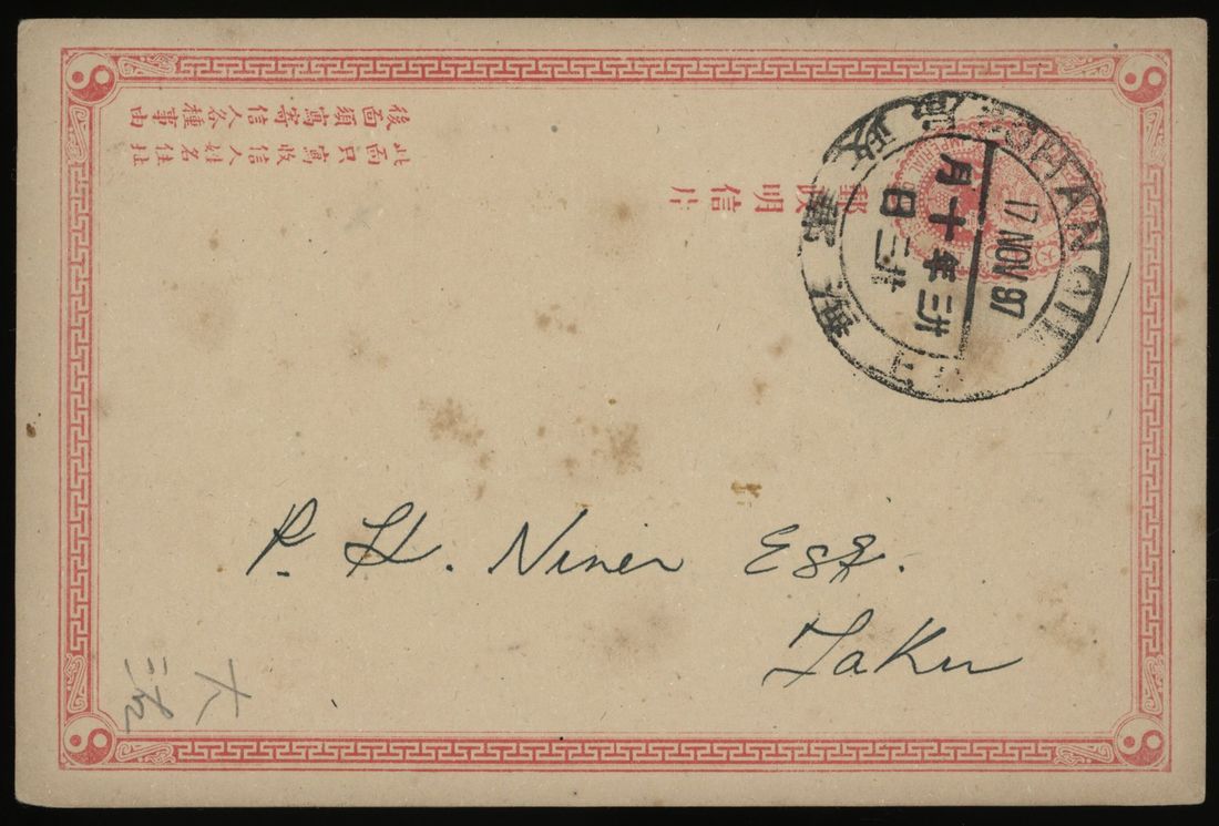 Selection of six postal stationery cards in mixed condition with stamps missing or toned, some nice Shanghai dollar chops.