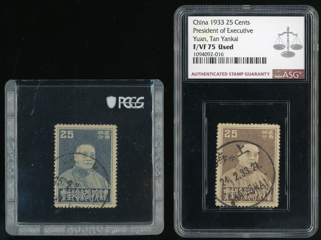 1933 Premier Tan Yen-Kai Commemorative Issue 25c. with ASG F/VF 75 Used showing different colour variety.