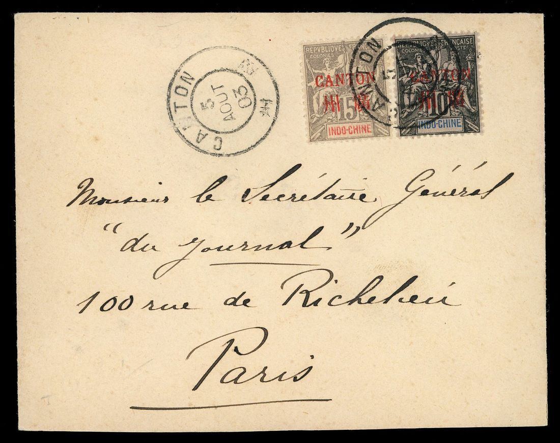 1903 (5 August) cover addressed to Paris bearing Canton 10c & 15c tied by Canton double ring cds.