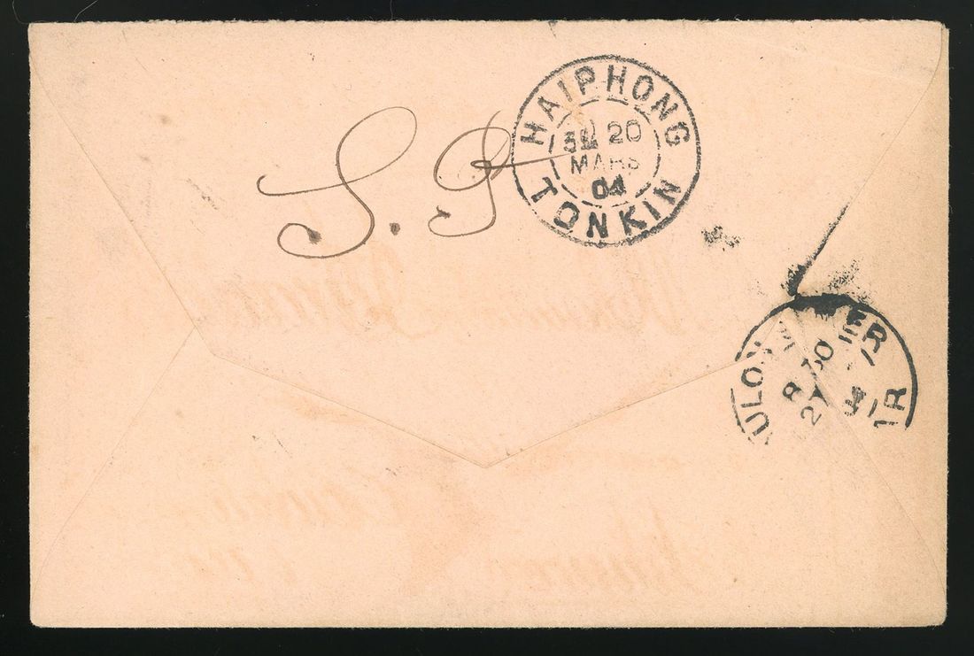 1904 (17 March) stampless cover addressed to France endorsed 'Corps d'Occupation du Tonkin' cancelled 'Fort Bayard/Indo-Chinese Francaise' with undated 'Corps Exped.' with military cachet 'Ambulance et Agence Sanitaire/Le Mediicen Chef/Terre de Quang-Tcheou'. Haiphong/Tonkin transit and Toulon arrival on reverse.