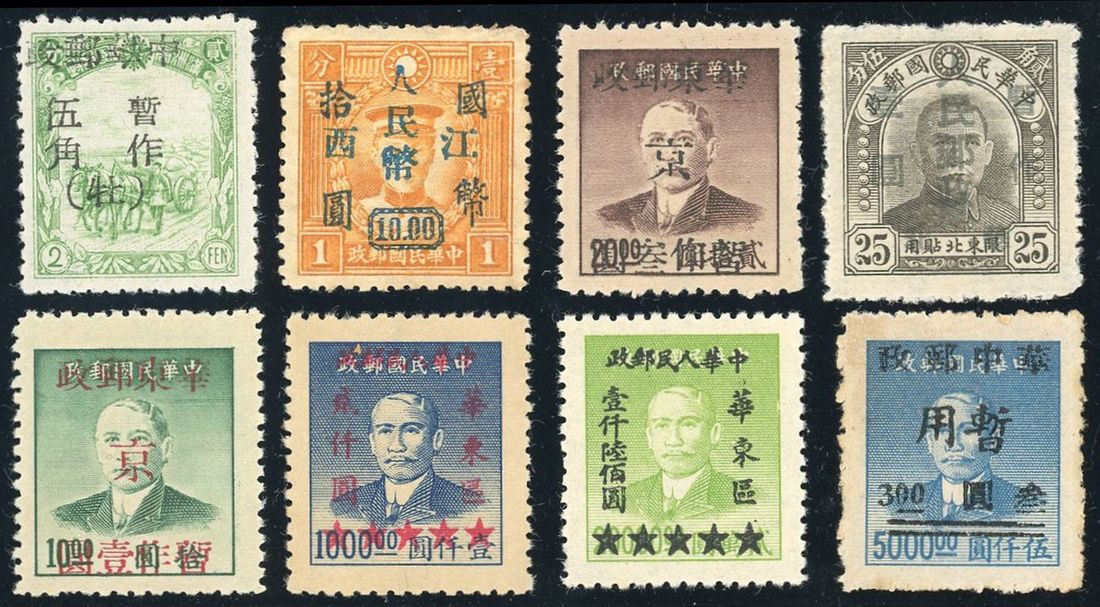 1942-1949 East China Liberated Area overprinted on Dr. Sun toyal aroutd 80 stamps in different values. all unused.
