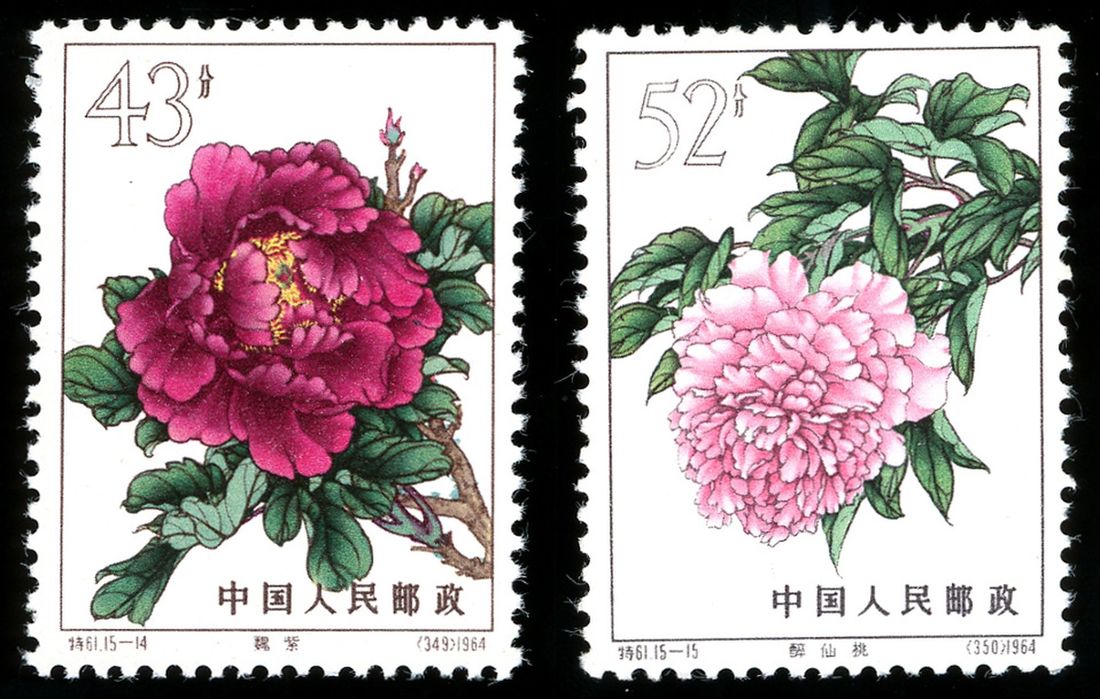 1964 S-61 Peonies complete set of fifteen, mint never hinged.