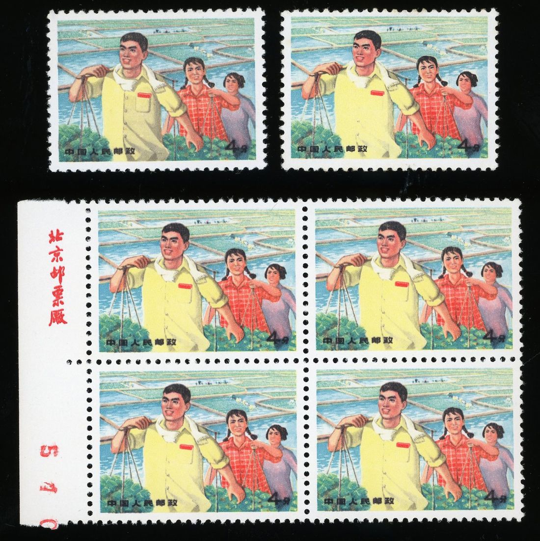 1969 (1 Oct.) Agricultural Students 4f. Harvesters,(6) including block of four with imprint margin, unused, fine.