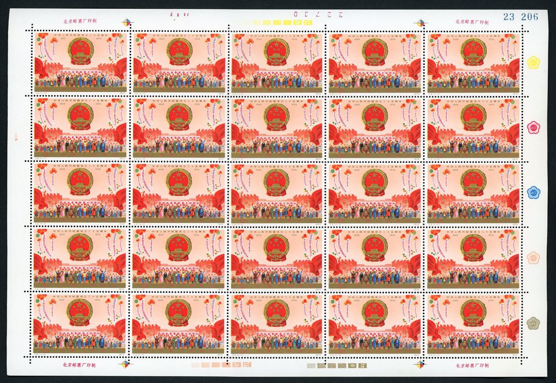 1974 (1 Oct.) 25th Anniv. of the founding of the P.R.C. 8f. set of one in full sheet of 24 (x2), unmounted mint, lightly toning.