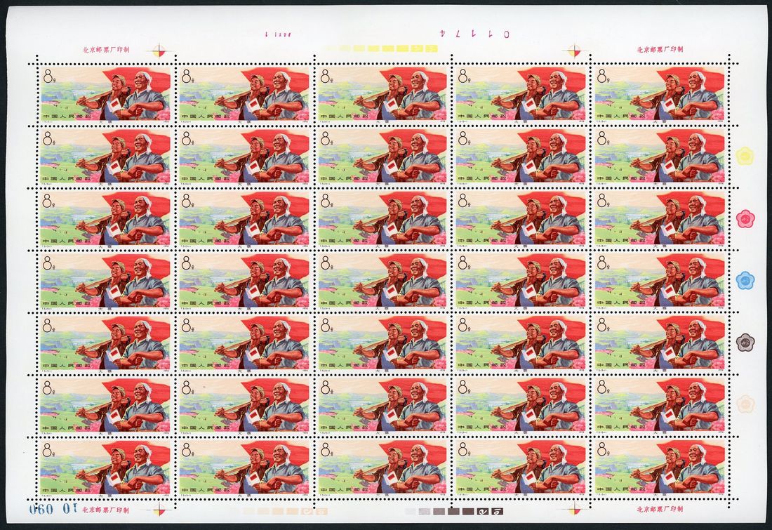 1974 (30 Sept.) T5 Tachai Red Banner. 8f. set of five in full sheet of 35, unmounted mint, lightly toning.