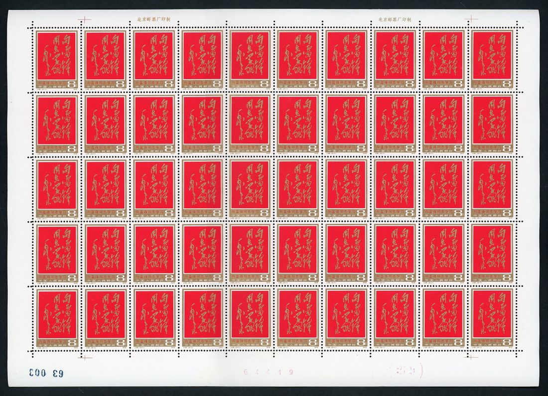 1978 (5 March) J26 Len Fen, A Communist Fighter. 8f. six sheets of three complete of 50, unmounted mint, lightly toning.