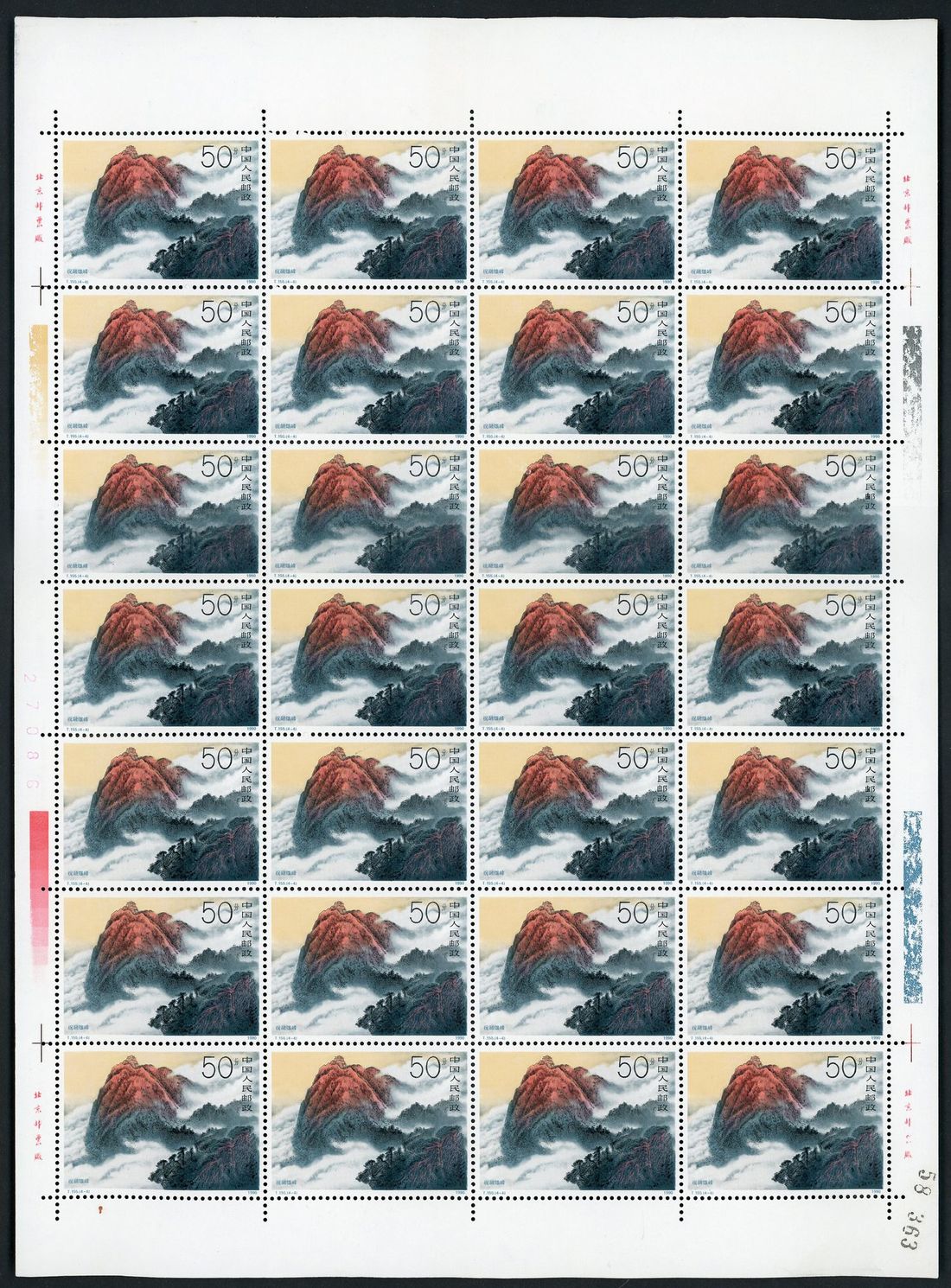 1990 (5 Nov.) T155 Mount Hengshan, 8f. -50f., ten sheets of four complete sheet of 28, unmounted mint, lightly toning.