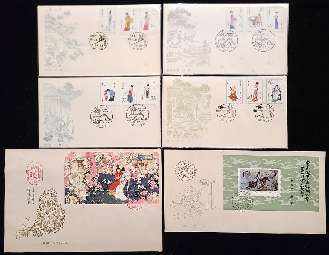 1979-1990 a lot of F.D.C. of J.T. Issues. Included : 1979 T41MS x3, 1981 T69 x 2sets, T69MS x 2, 1982 J85MS x 4 and plus two miniatures, 1984 T89MS x 3 plus two miniatures, 1984 T99MS x 4, 1985 T103MS x 2, 1987 T123 x 2, 1990 T158 x 3 and three presentation folder of 1988 T129 plus three set stamps in a sheet ( with imprint margin).