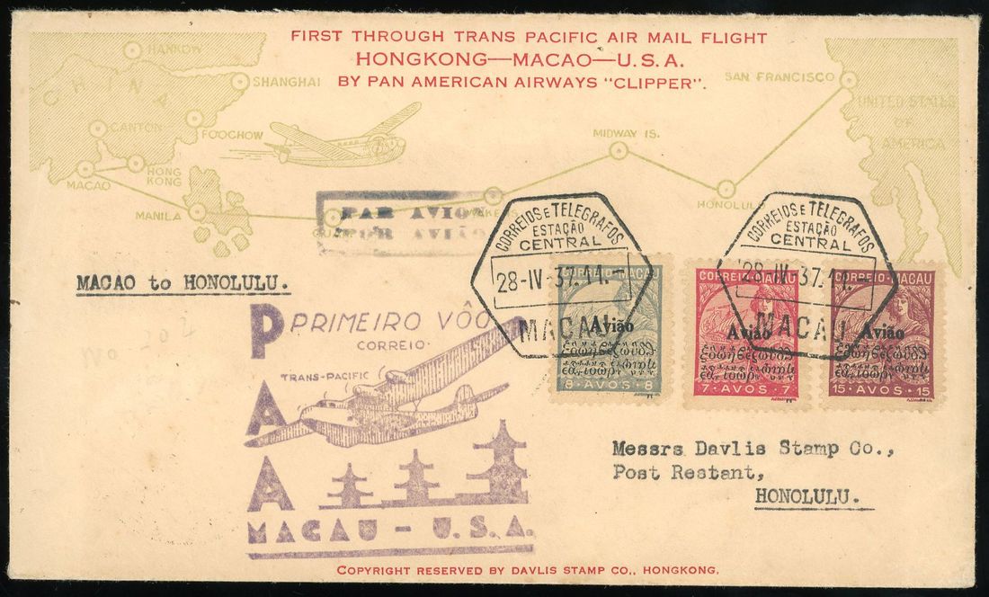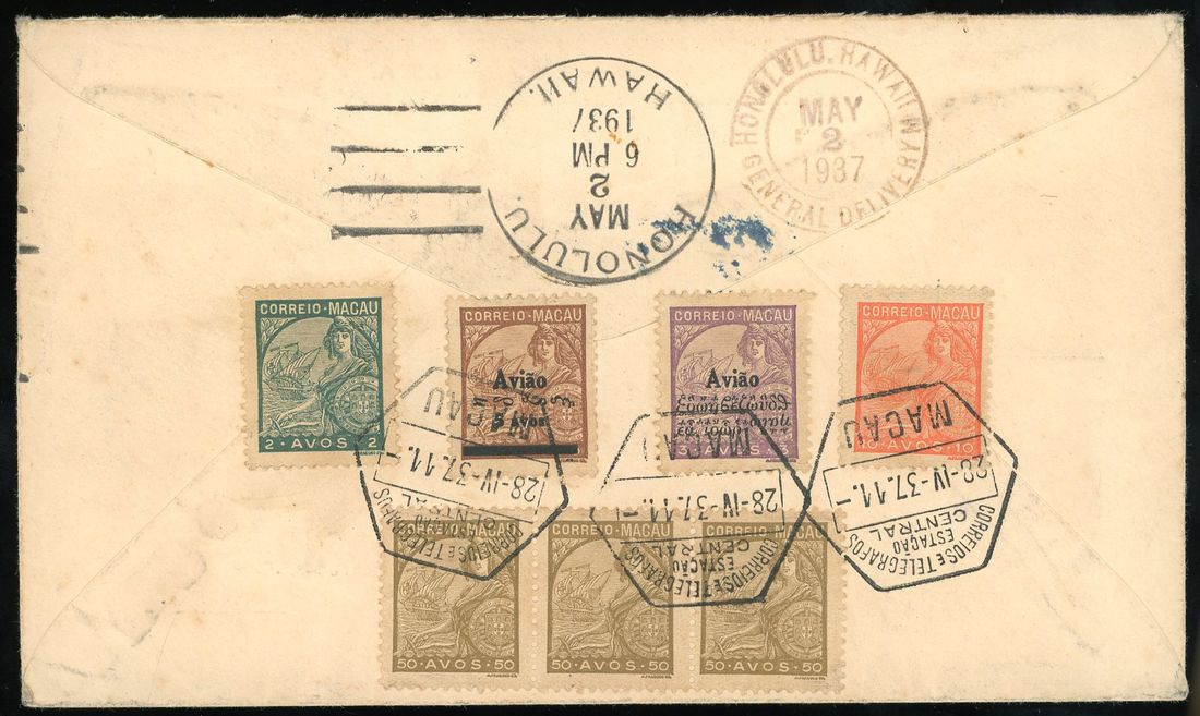1937 (28 April) Macao to Honolulufirst flight cover, with Honolulu arrival c.d.s. (2.5)