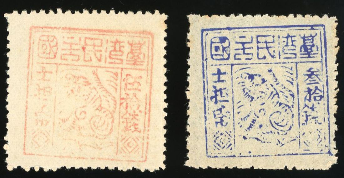 1895 Third Issue of The Black Flag Republic, 30 cash blue and 50 cash vermilion. unused.