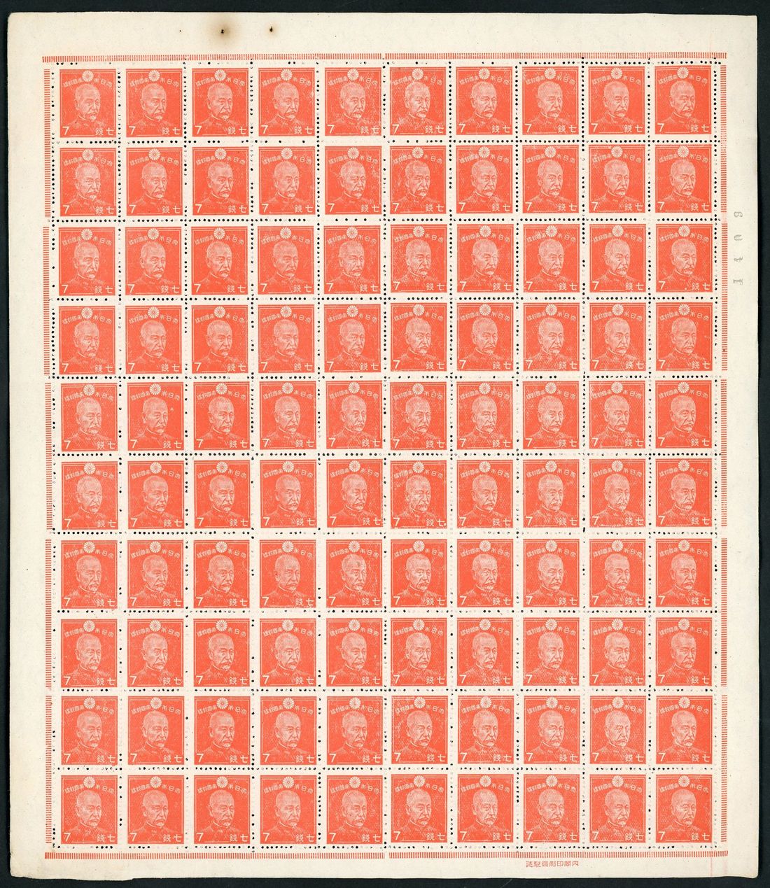 1941-1945 a lot of 7 full sheets of Japanese stamp. These stamp had been used in Hong Kong under Japan occupation. The full sheets including: 1s. (x2), 2s, (x2), each one full sheet of 4s., 5s. and 7s. All unused.