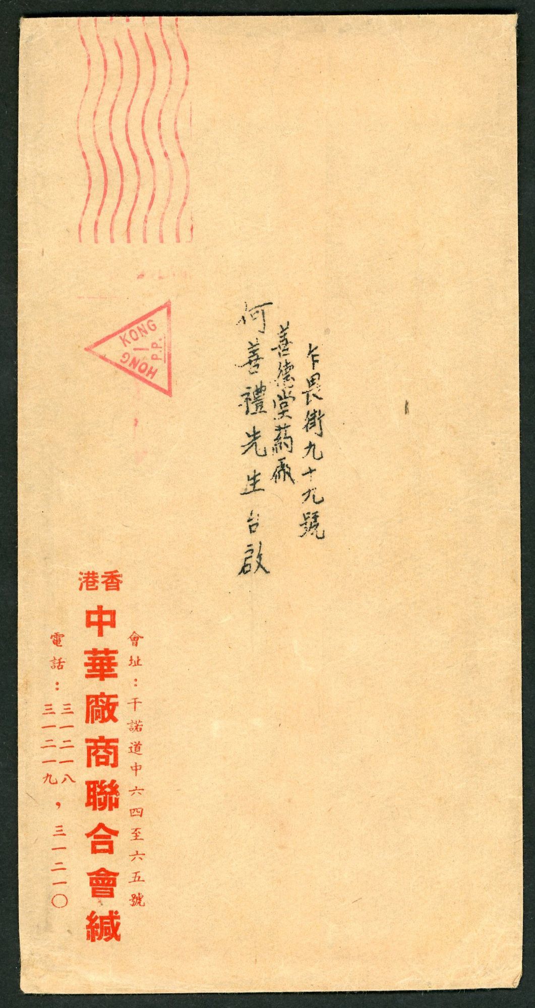 1960s Hong Kong to local business cover, with trangle postage paid postmark in red.