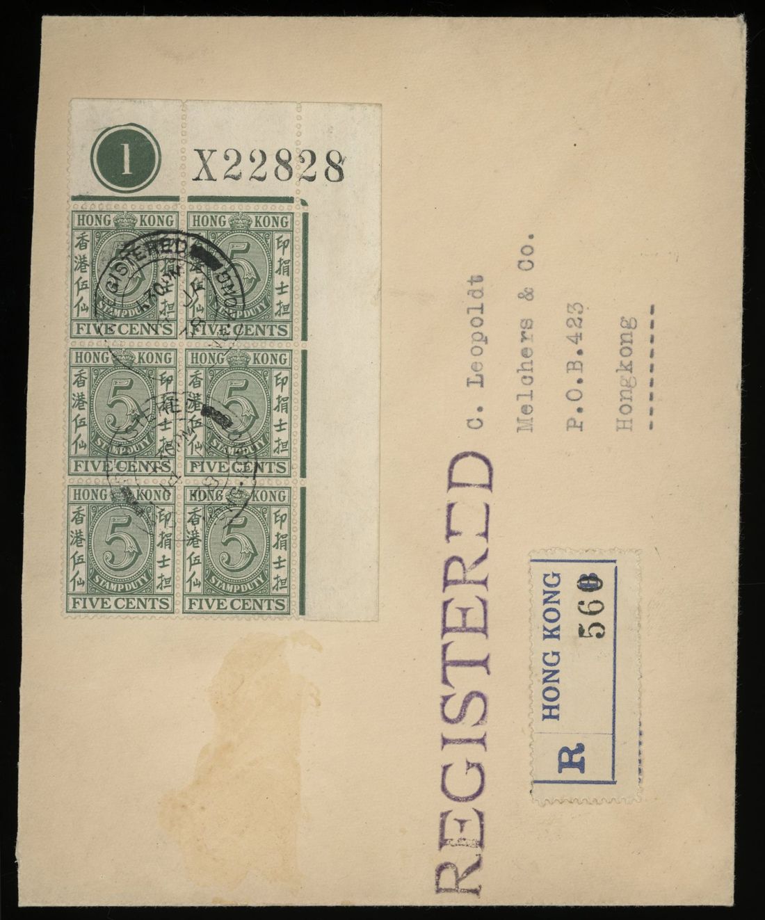 Collection of 5c Duty stamps used on cover, total 22 items. A scarce offering, mixed condition.