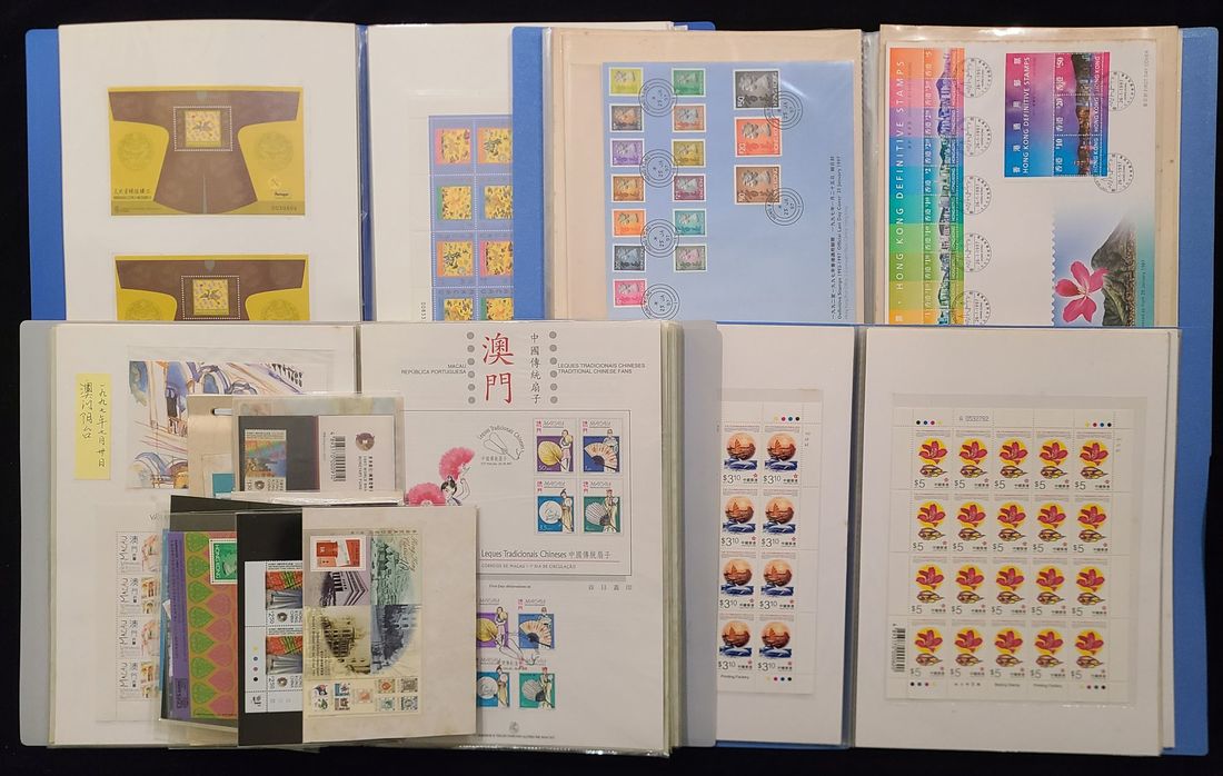1990s Four collection albtms of stamps issued by the post office from the colonial era to the special administrative region era. Includes general stamps, zodiac stamps, and various commemorative stamps, such as blocks of four, souvenir sheets, and first-day covers; plus various Macau souvenir sheets and full sheets, which have high market value. Please preview.
