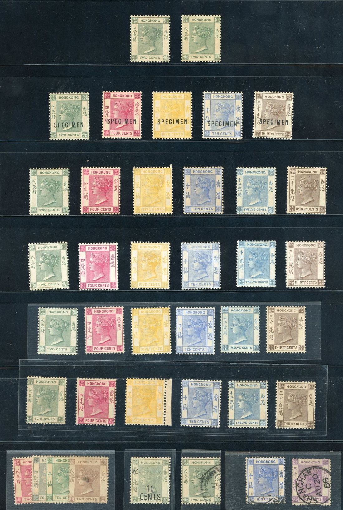 A lot of 39 QV issues, mint and used, including 1898 10c on 30c, four set of 1900 R16, and five specimen of R16 (2c, 4c, 5c, 10c and 30c). mixed condition, please perview.