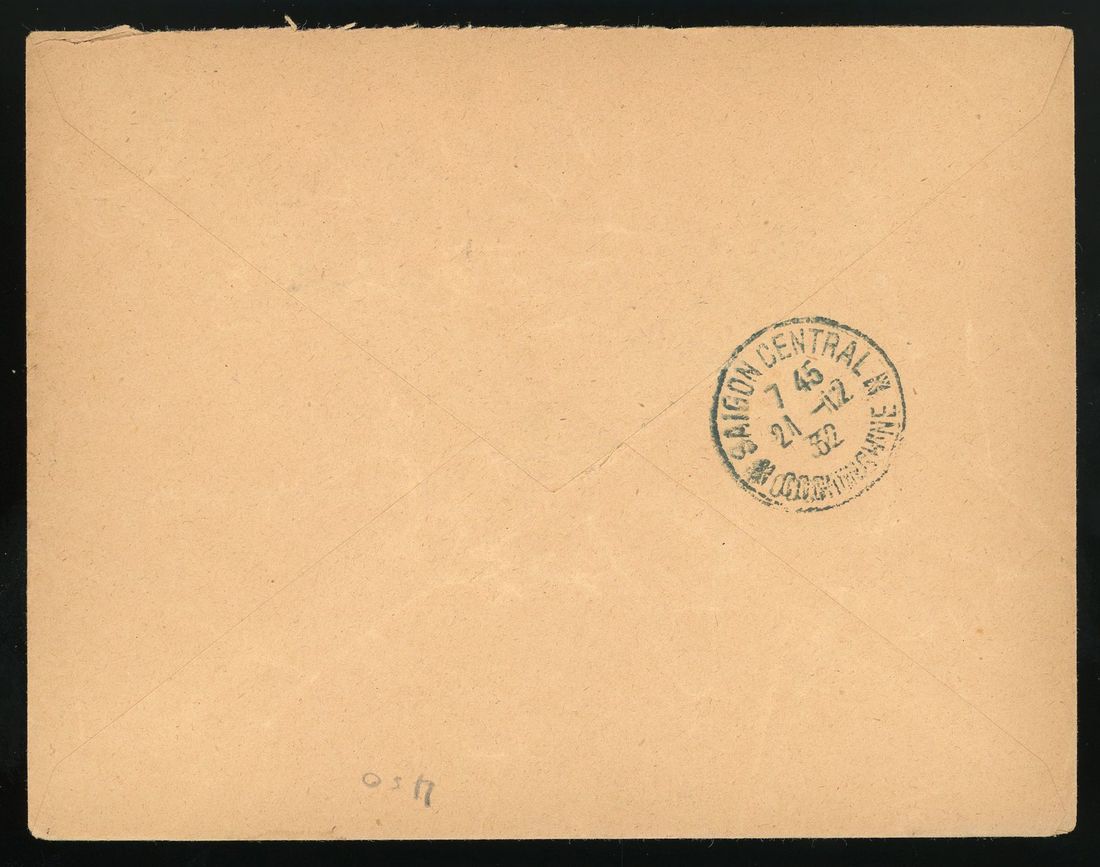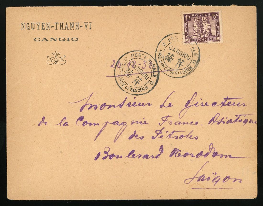 1932 cover addressed to Saigon bearing 5c tied by 'Poste Rurale/Can-Giou/Province de Gia-Dinh' cds routed via Gia-Dinh with Saigon arrival cds on reverse. Ex Desrousseaux.