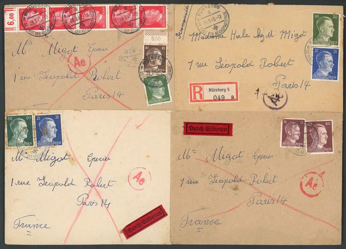 1942-1943 a lot of 40 Germany covers in WWII, most are registered covers, and all sent to same address. all bearing Hitler's Issues,
