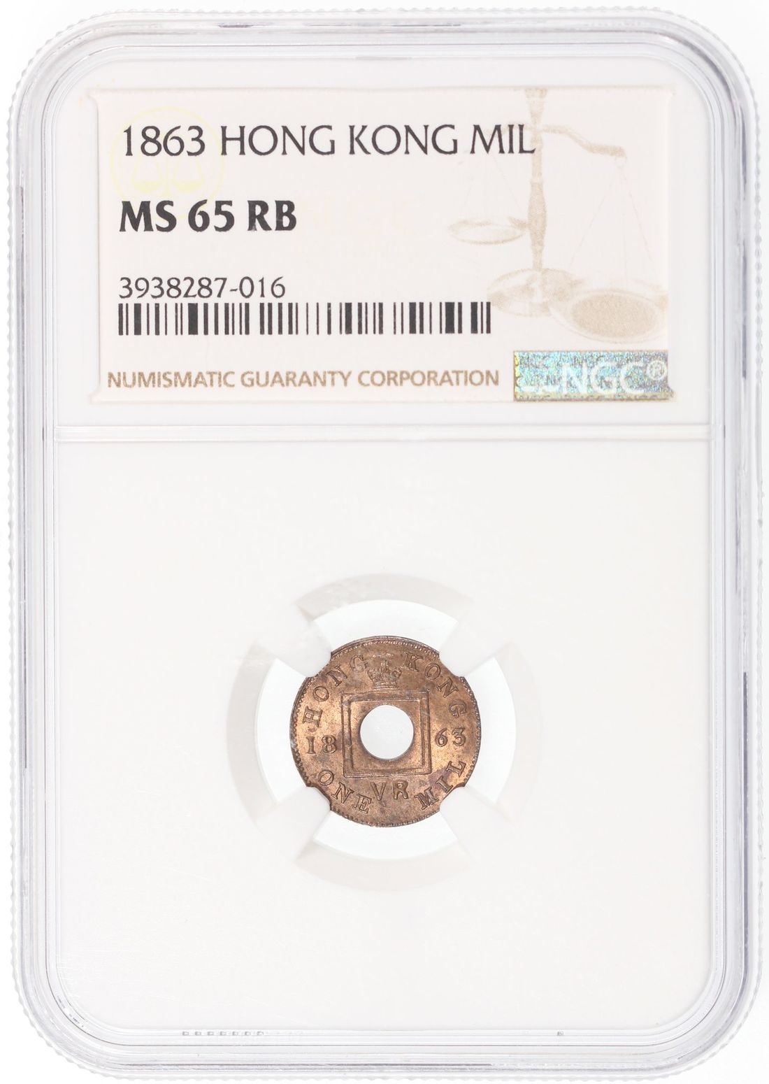 Hong Kong, Victoria, [NGC MS65RB] bronze 1 mil, 1863, (KM-1), Cert. #3938287-016