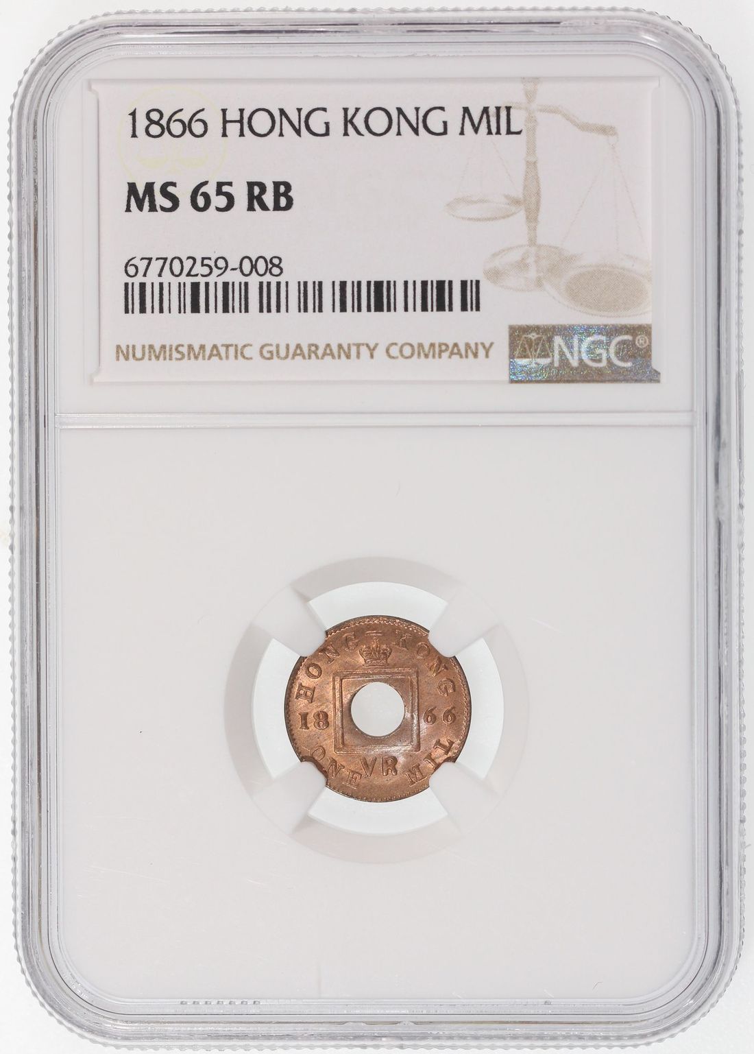 Hong Kong, Victoria, [NGC MS65RB] bronze 1 mil, 1866, (KM-3), Cert. #6770259-008