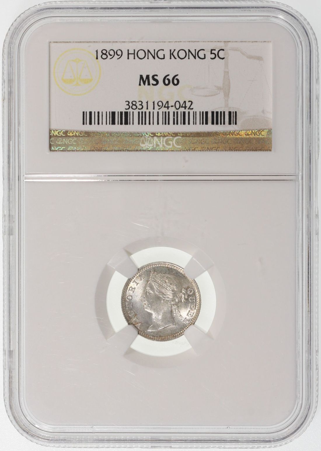 Hong Kong, Victoria, [NGC MS66] silver 5 cents, 1899, Victoria on obverse, Cert. 3831194-042