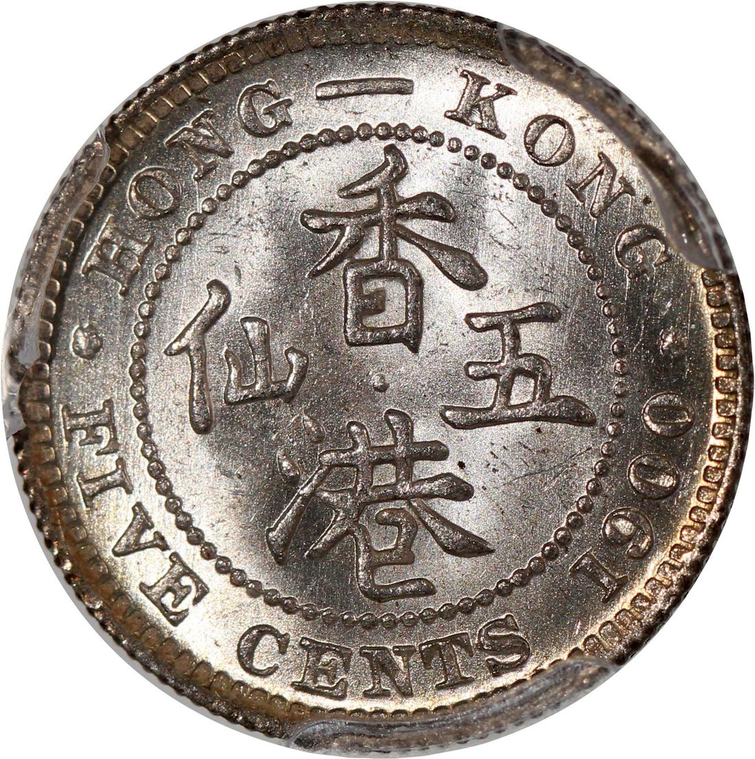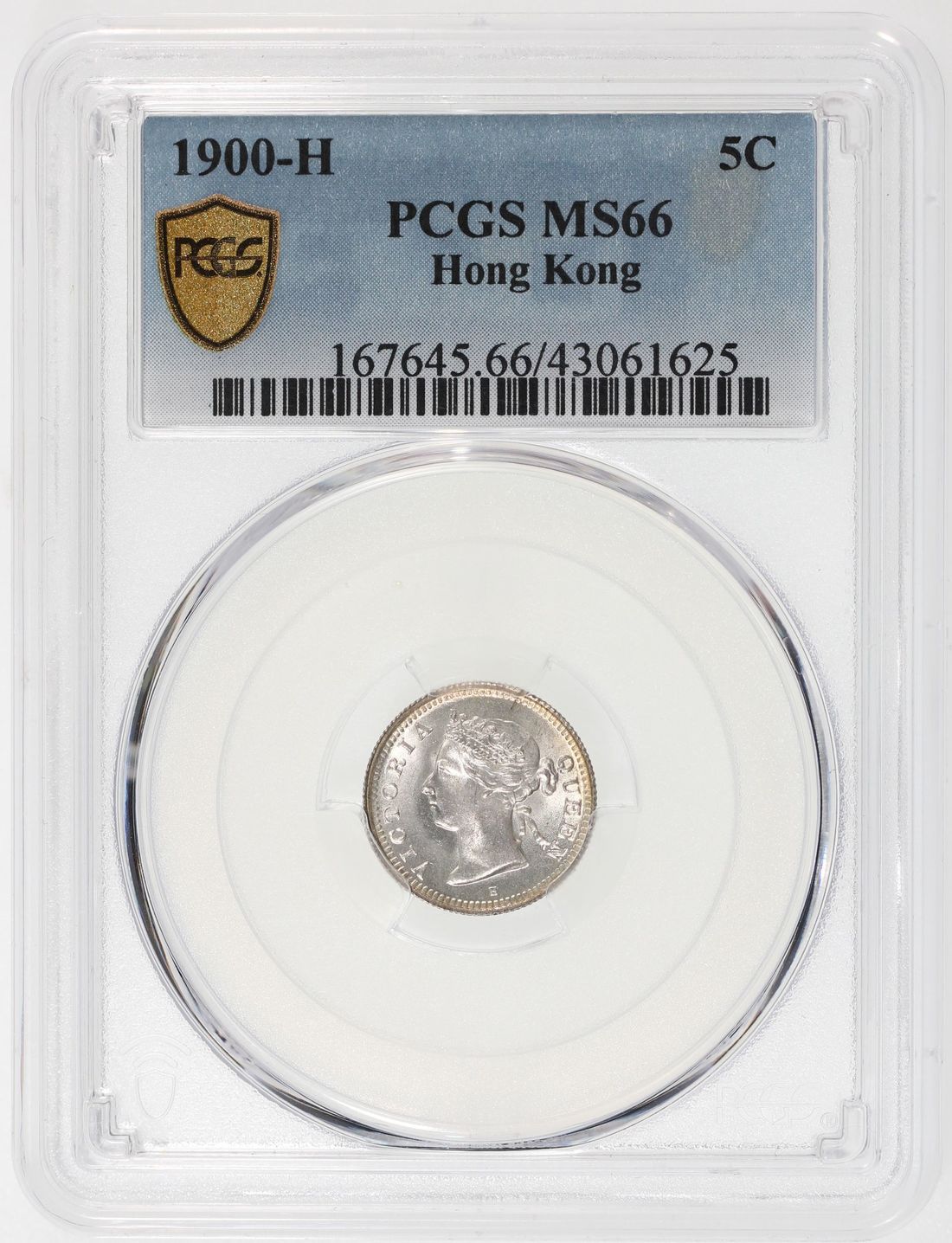 Hong Kong, [PCGS MS66] silver 5 cents, 1900H, Victoria on obverse, (KM-5), Cert. #43061625, only 6 finer examples in the PCGS population report