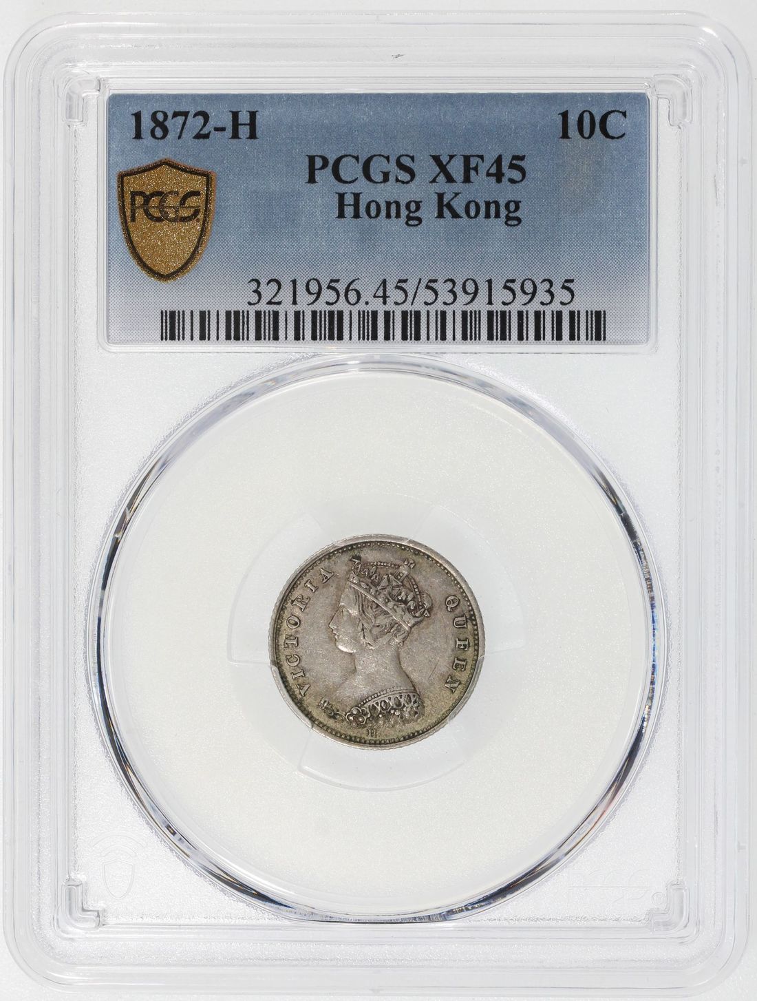 Hong Kong, Victoria, [PCGS XF45] 10 cents, 1872-H, mintage 88,000,