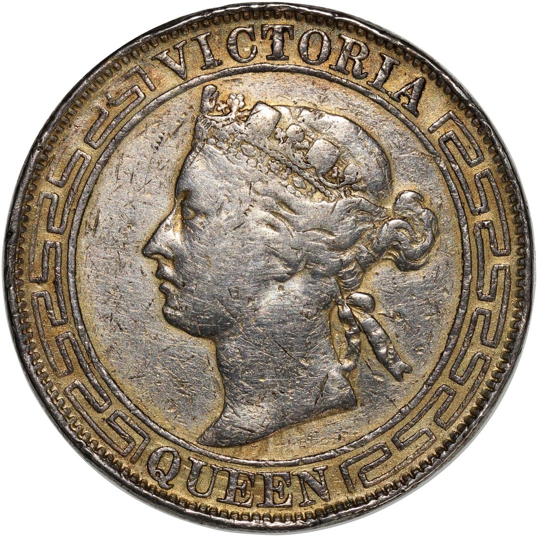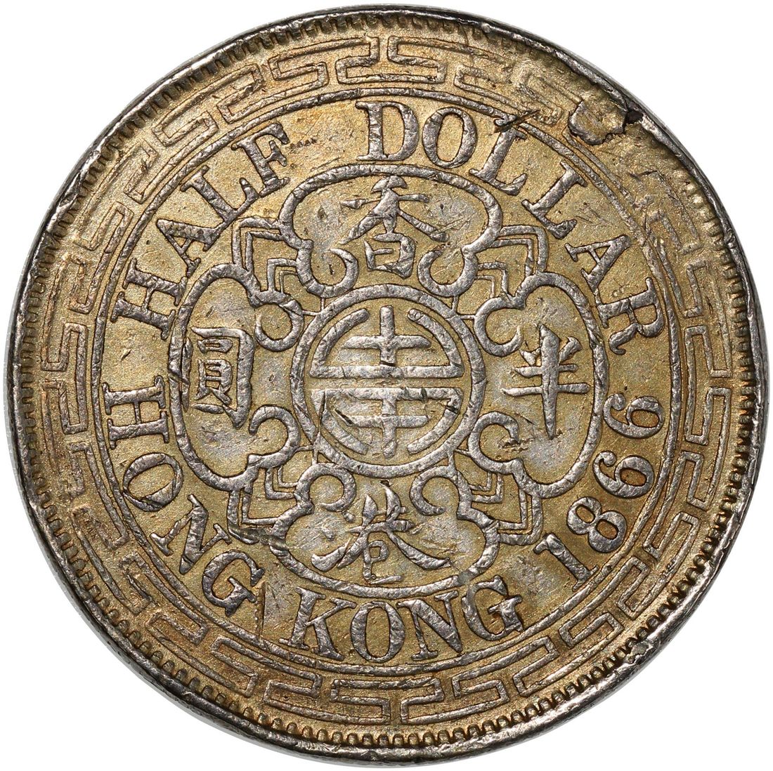 Hong Kong, Victoria, silver half dollar, 1866, NGC not encapsulated, altered surface. Some filling and scratch at reverse, balance fine. "VIEWING RECOMMENDED, NO RETURN FOR THIS LOT"