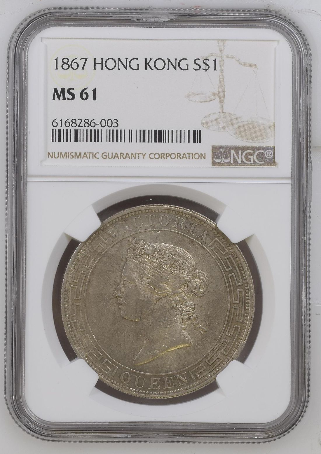 Hong Kong, Victoria, [NGC MS61] silver dollar, 1867, 'large 7' type, #6168286-003