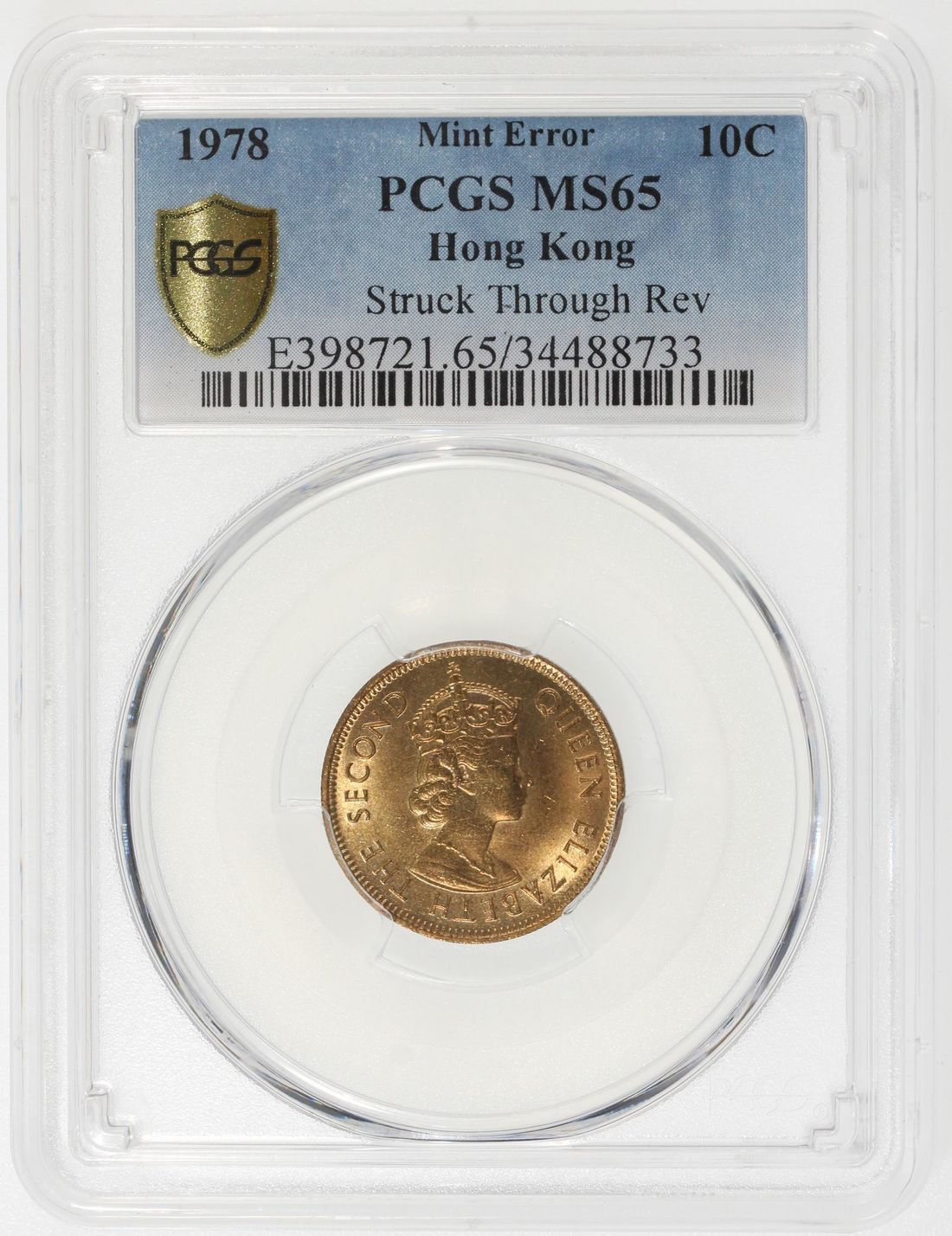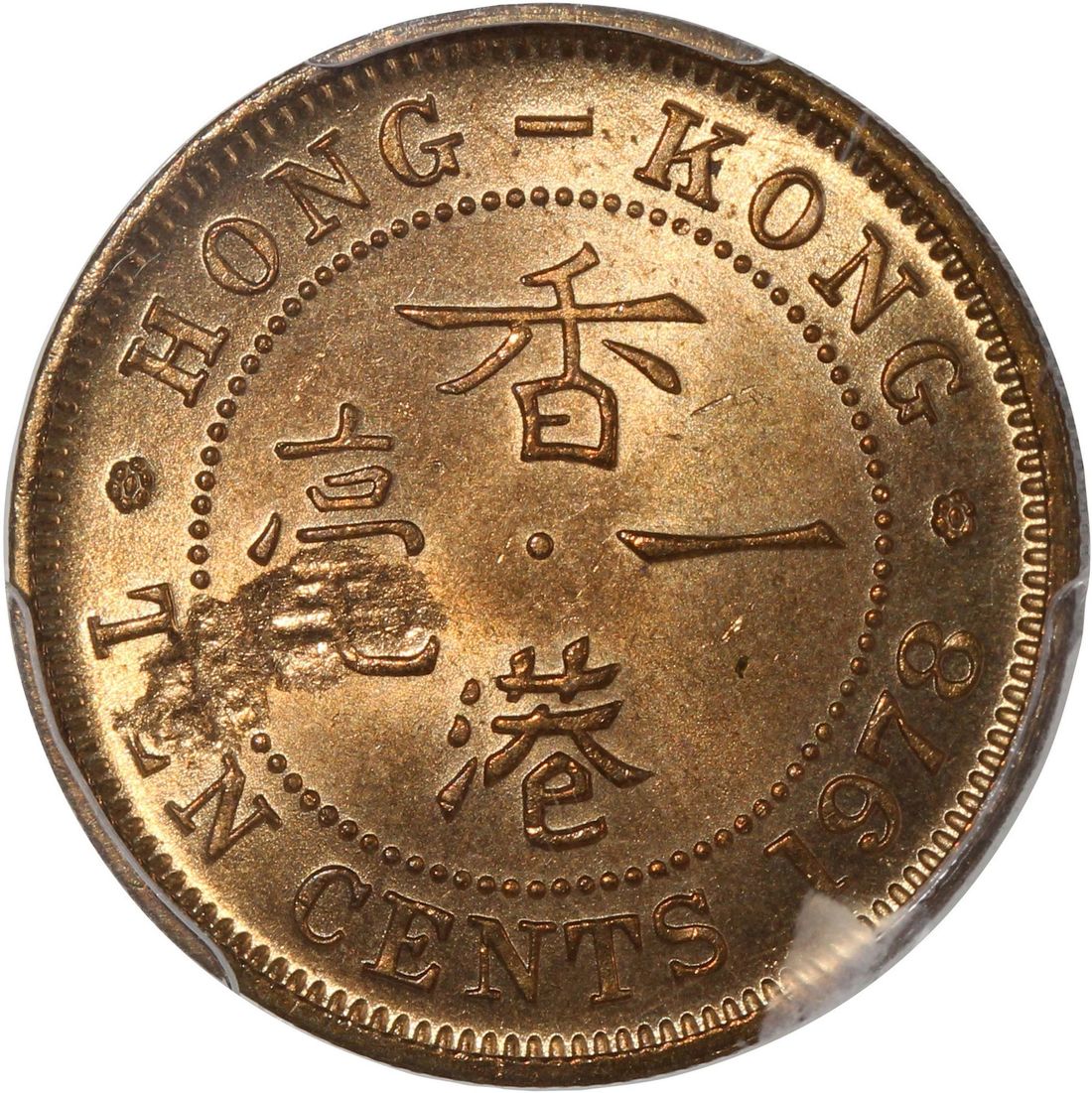 Hong Kong, [PCGS MS65] MINT ERROR 10 cents, 1978, "struck through reverse", #34488733