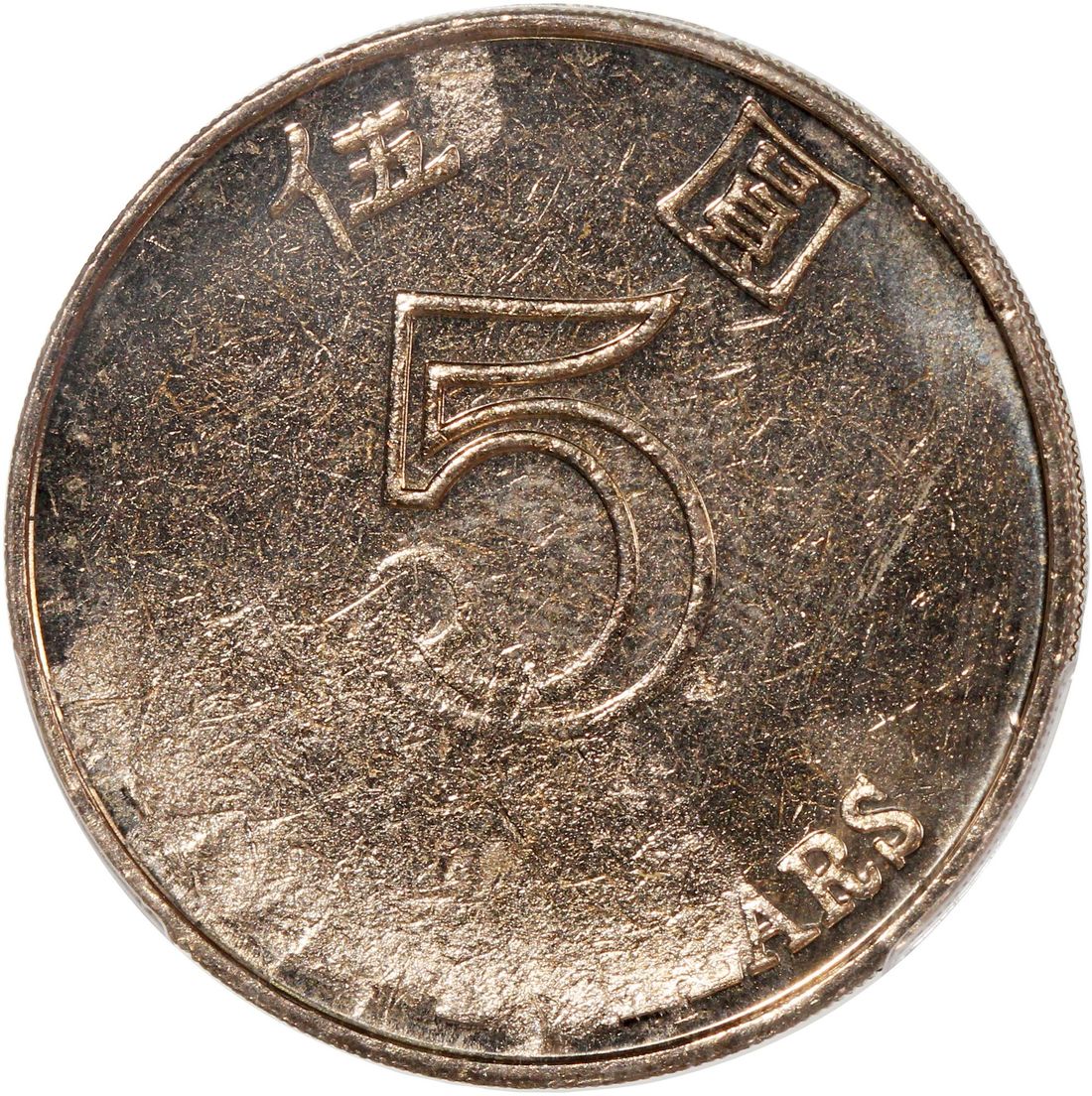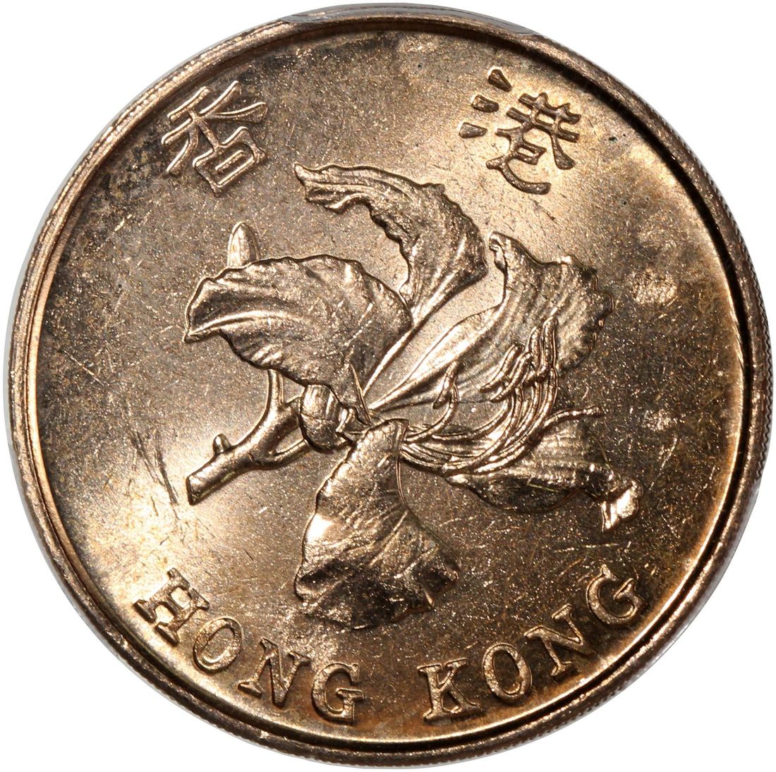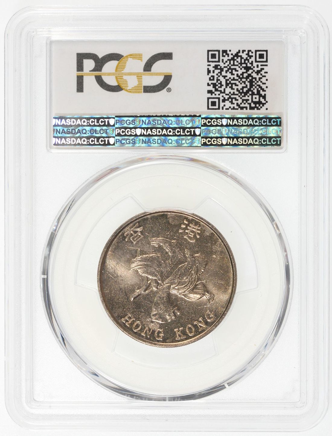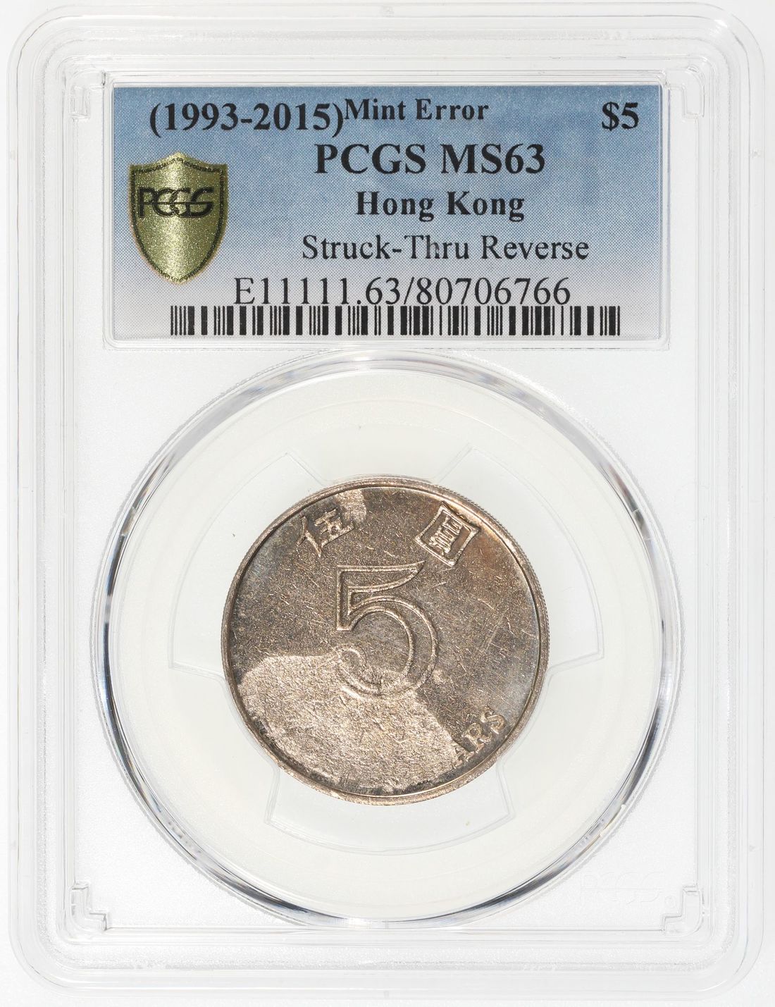 Hong Kong, [PCGS MS63] MINT ERROR $5, 1993-2015, "struck through reverse", #80706766