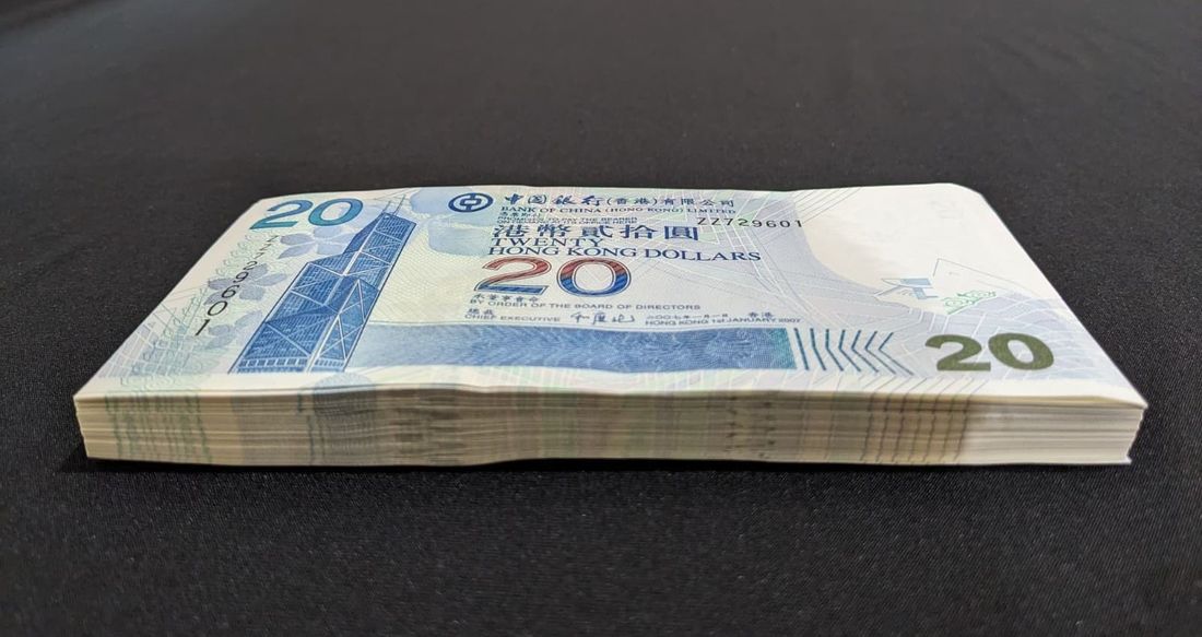 Bank of China, Hong Kong, replacement $20 (100), 2007, serial numbers ZZ729601-654, 656-669, 671-702, (Pick 335d*), as issued uncirculated. Replacement notes rarely seen in consecutive bundles (100)