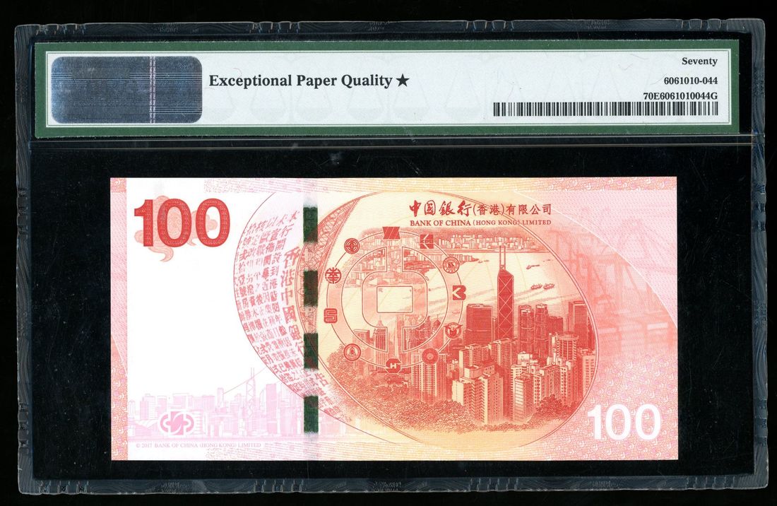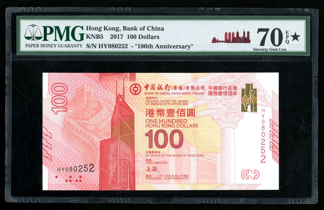 Bank of China, Hong Kong, $100, 24.9.2017, serial number HY 080252, 100th anniversary of the bank in Hong Kong commemorative issue,