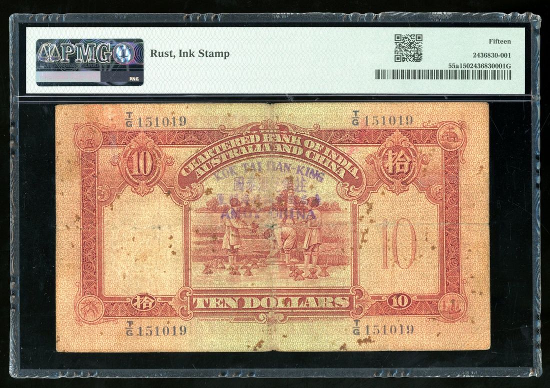 (Pick 55a), PMG 15, rust, ink stamp. Interesting stamp at reverse, all handsigned examples generally quite scarce