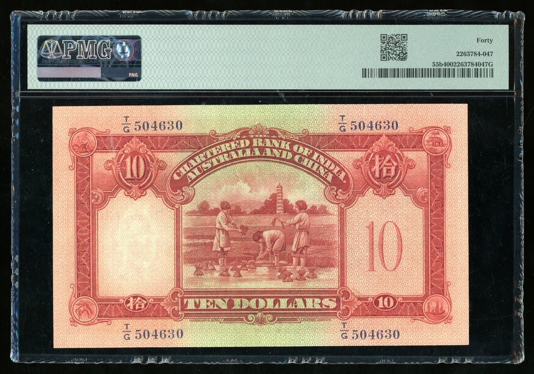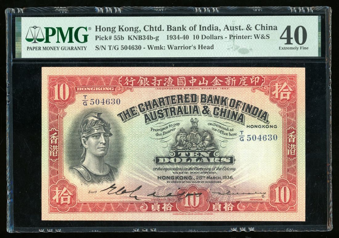 Chartered Bank of India, Australia & China, Hong Kong, $10, 28.3.1936, serial number T/G 504630, one handsigned signature,