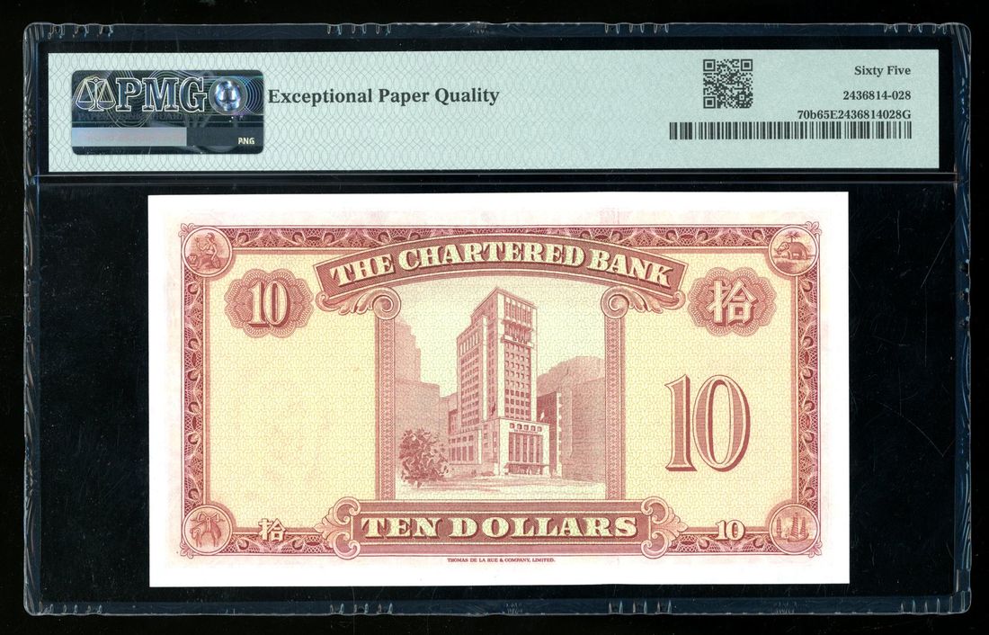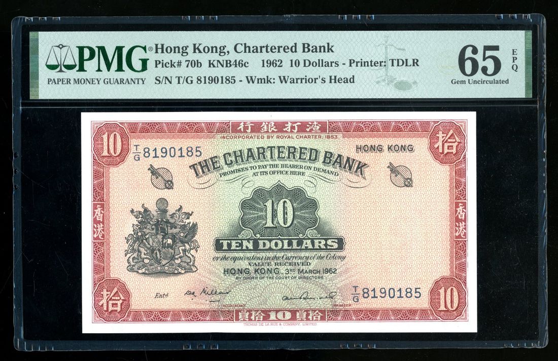 Chartered Bank, Hong Kong, $10, 3.3.1962, serial number T/G 8190185, (Pick 70b), PMG 65EPQ