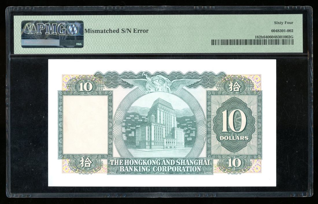 HongKong & Shanghai Banking Corporation, ERROR $10, 31.3.1979, mismatch serial number G/7 297902/297912, (Pick 182h), PMG 64
