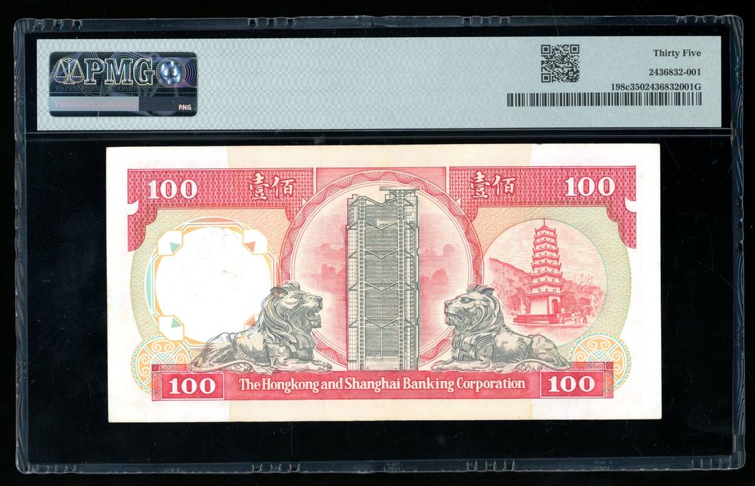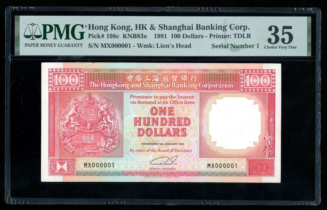 HongKong & Shanghai Banking Corporation, $100, 1.1.1991, low serial number MX000001, (Pick 198c), PMG 35. Number 1 note!