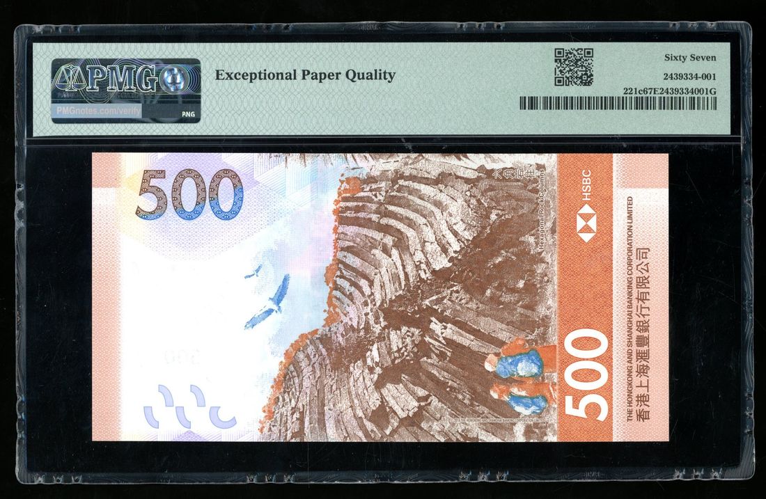 HongKong & Shanghai Banking Corporation, $500, 1.1.2023, solid serial number LD 888888, (Pick 221c), PMG 67EPQ. The most popular solid serial number!