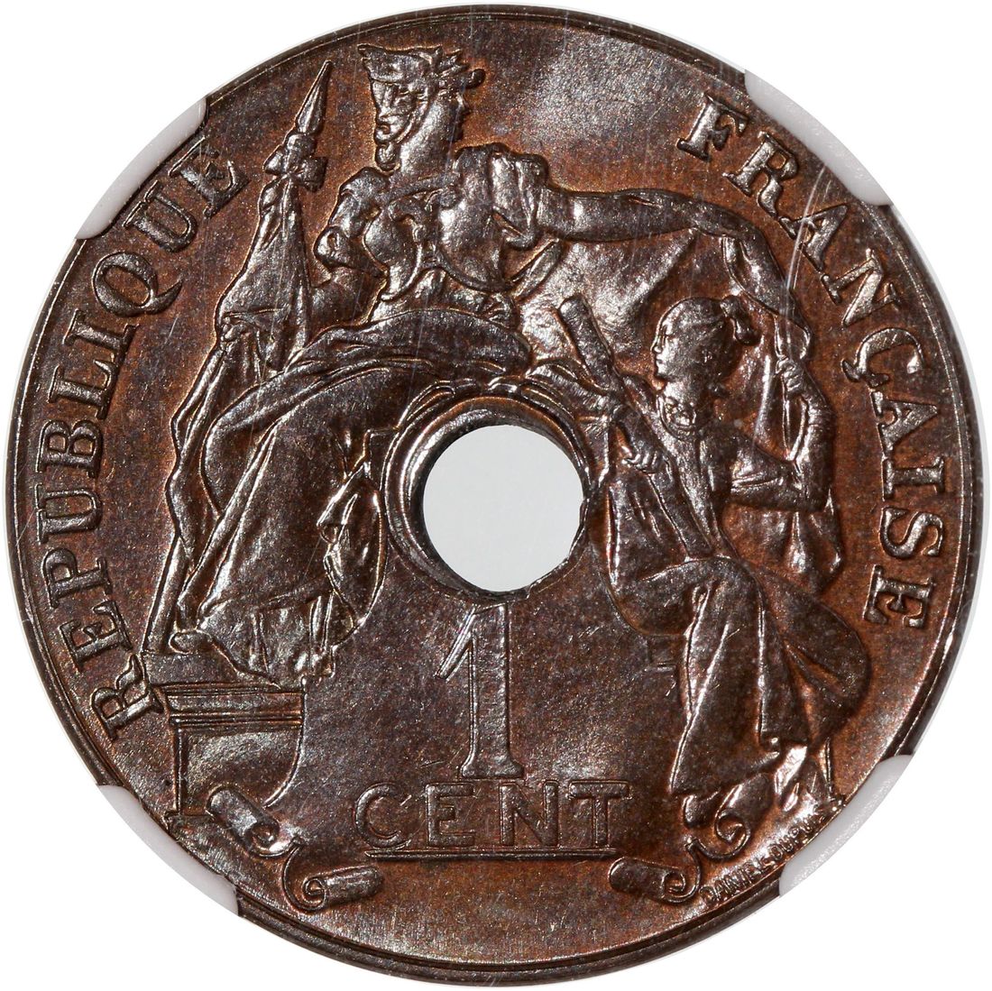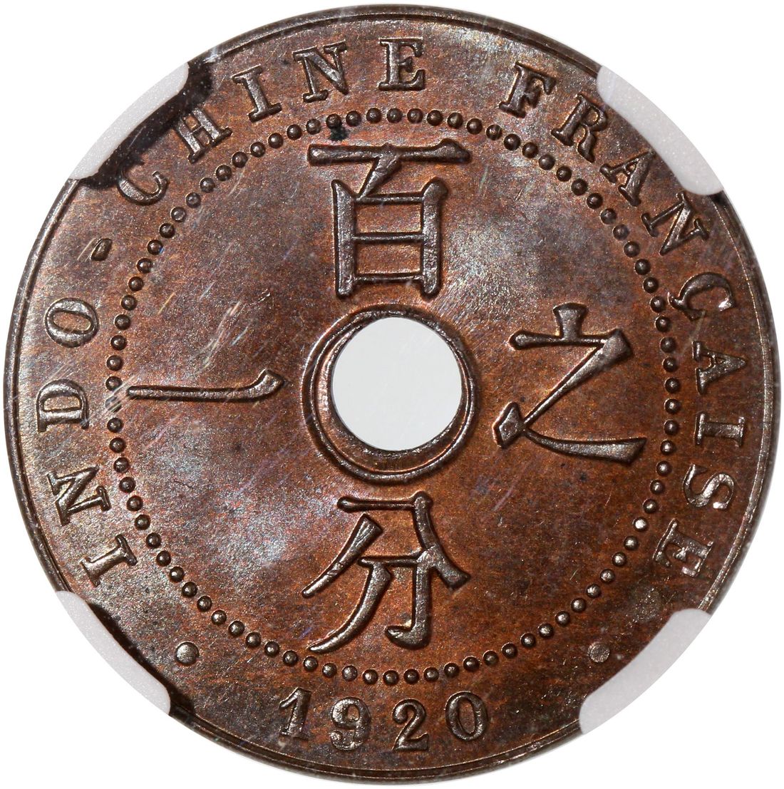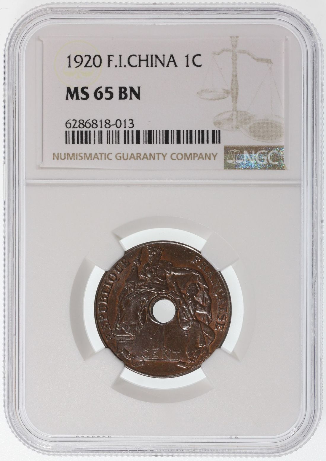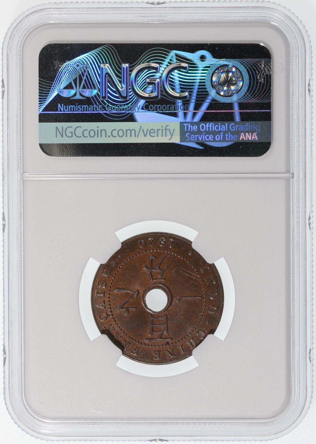 French Indo China, [NGC MS65BN] copper 1 cent, 1920, #6286818-013. NGC census TOP POP