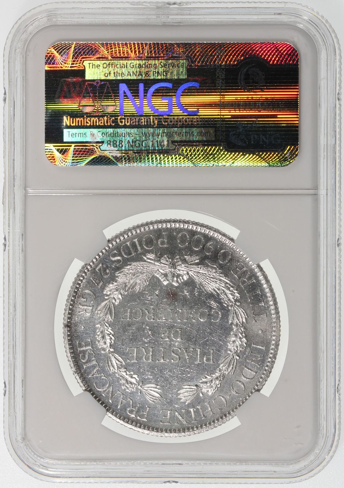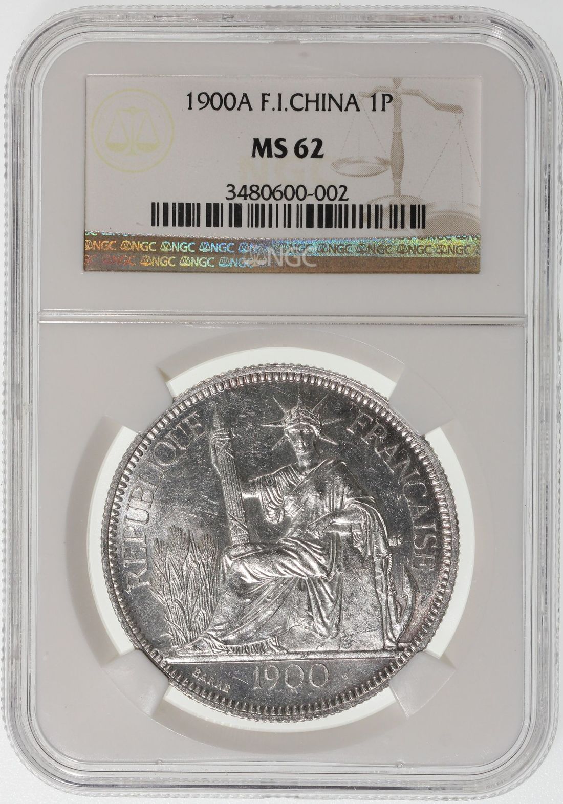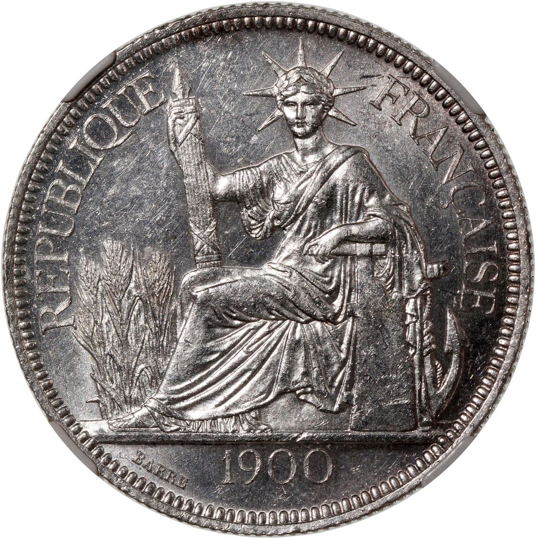 French Indo China, [NGC MS62] silver piastre, 1900-A, Paris Mint, #3480600-002. Attractive