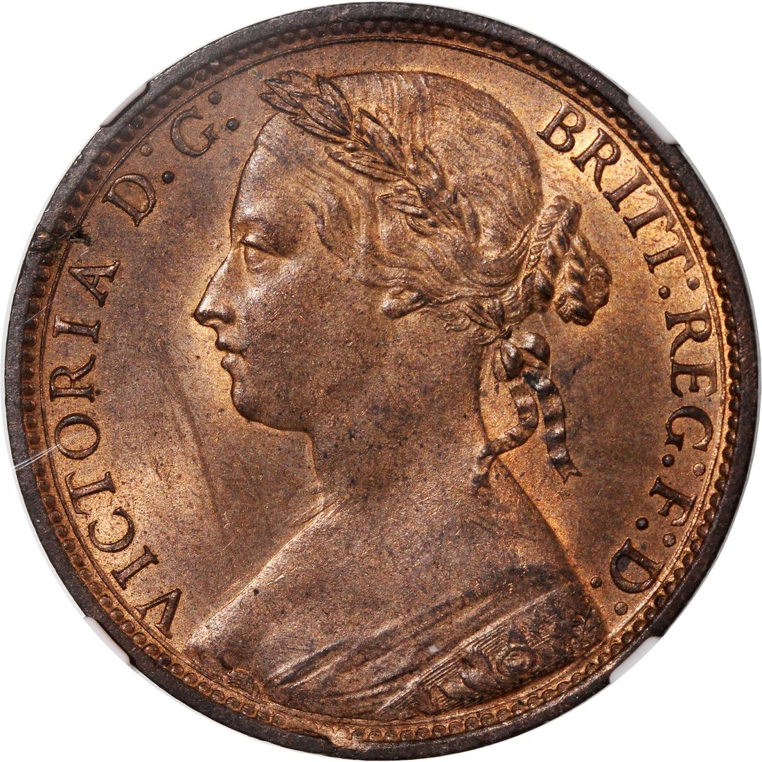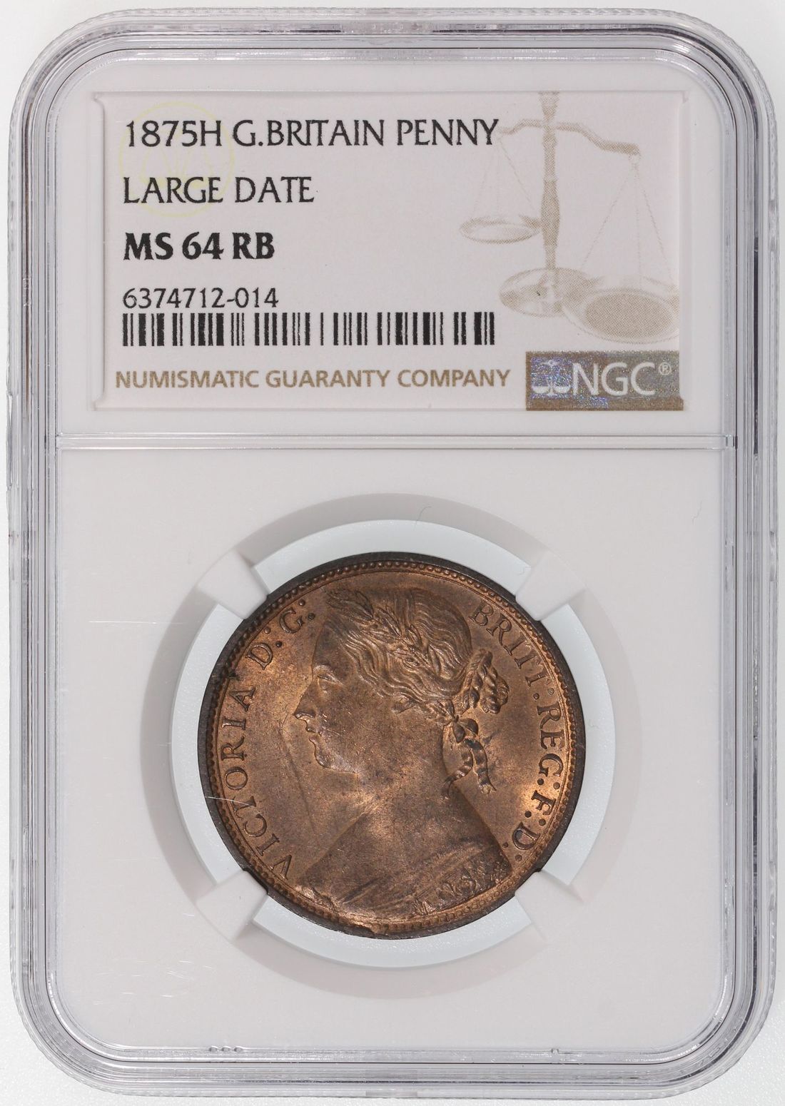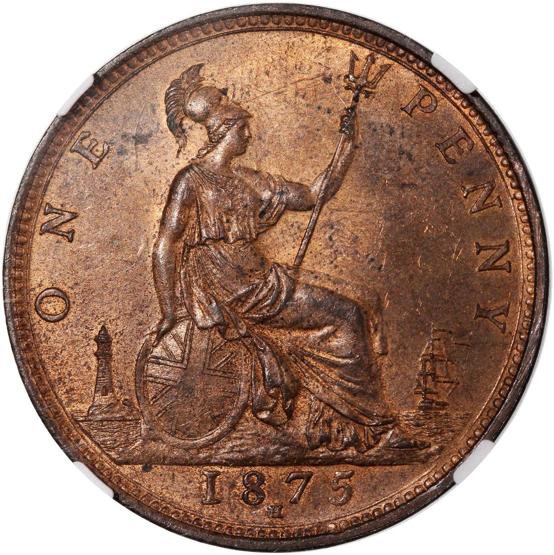 Great Britain, Victoria, [NGC MS64RB] penny, 1785-H, 'Large Date', (S-3955), #6374712-014. One of three TOP POP examples on NGC census. Lovely