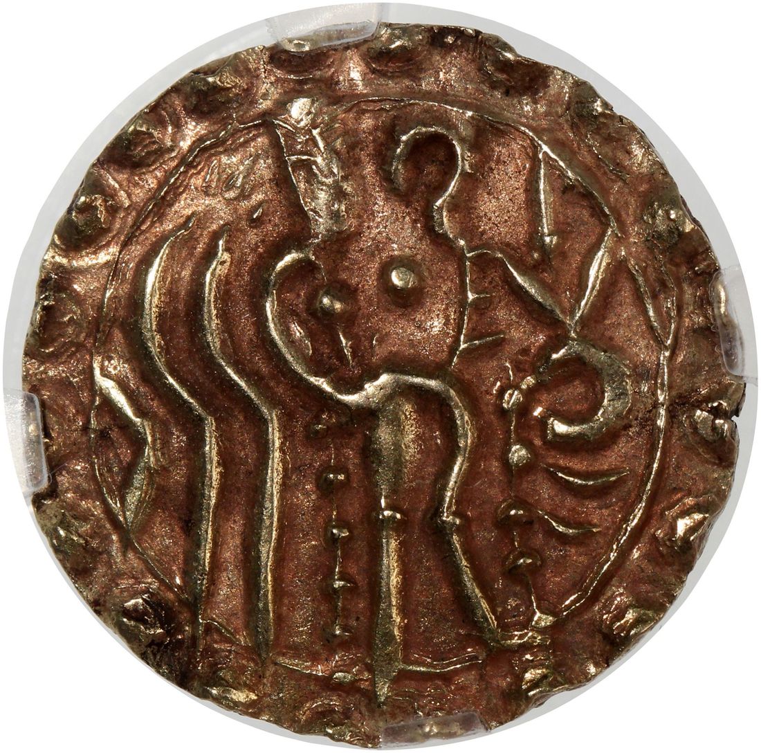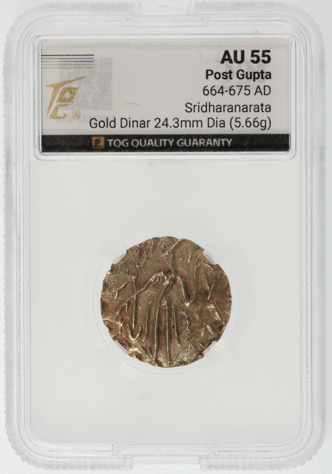 India, Post Gupta, gold dinar, Sridharanarata (664-675AD), 24.3mm diameter, weigh 5.66g,