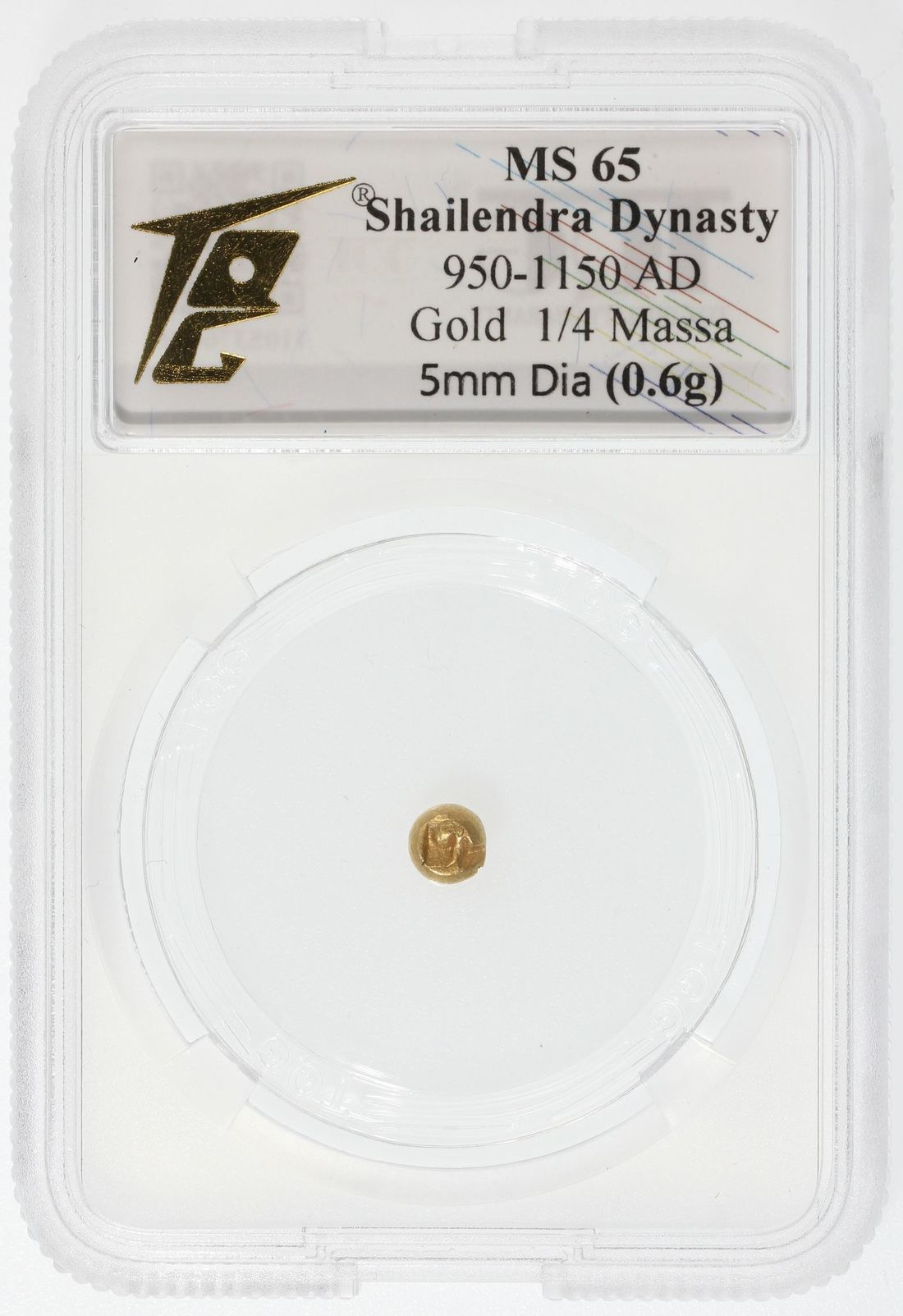 Indonesia, Shailendra Dynasty, gold 1/4 massa, 950-1150AD, 5mm diameter, weight 0.6g,