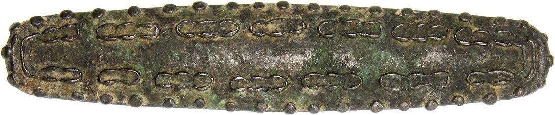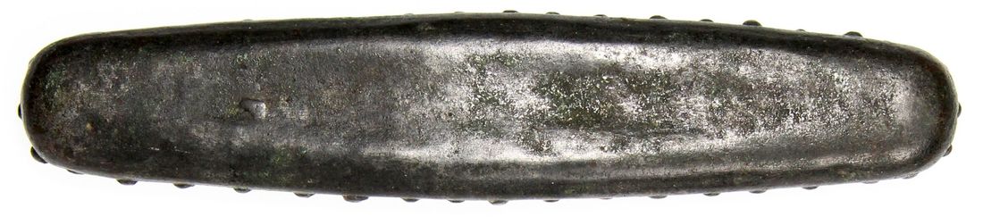 Laos, Lanchang, lat "tiger tongue" money, ca.1570 onwards, with no additional stamps, 110.3 x 23.0 x 6.7mm, 1471 grains = 95.3g,