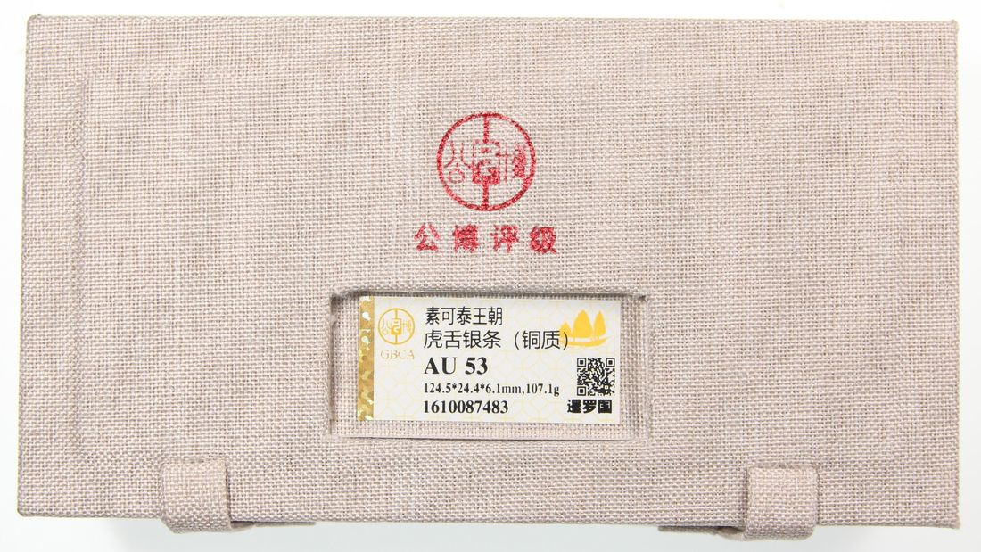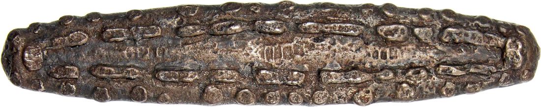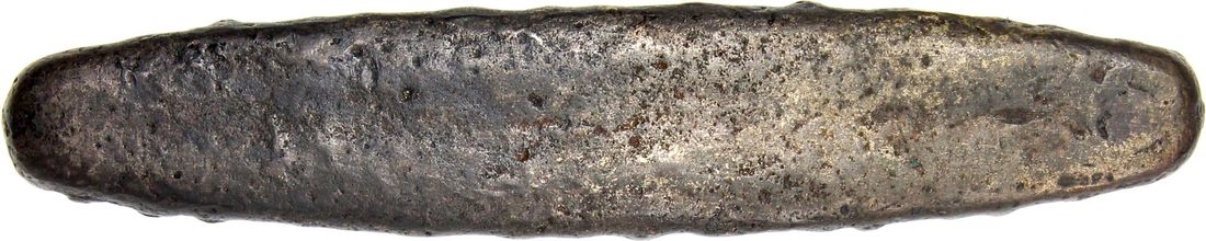 Laos, Lanchang, copper lat "tiger tongue" money, ca 1480-1570, with 'Na' stamped three times, 124.5 x 24.4 x 6.1mm, 1665 grains = 107.1g,