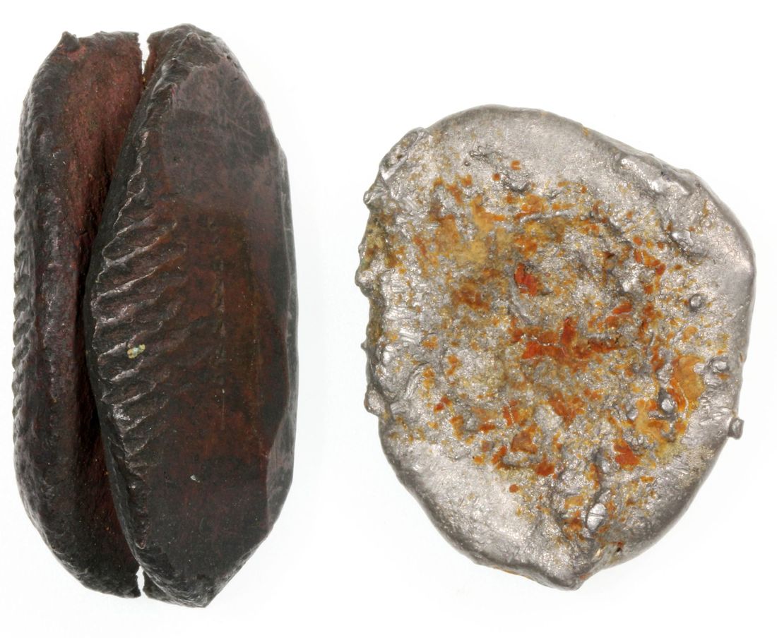 Thailand, North, 2x shell shaped curiosities, including, -a fan shell shaped item, 516 grains = 33g. (Ex- Howard D. Gibbs),